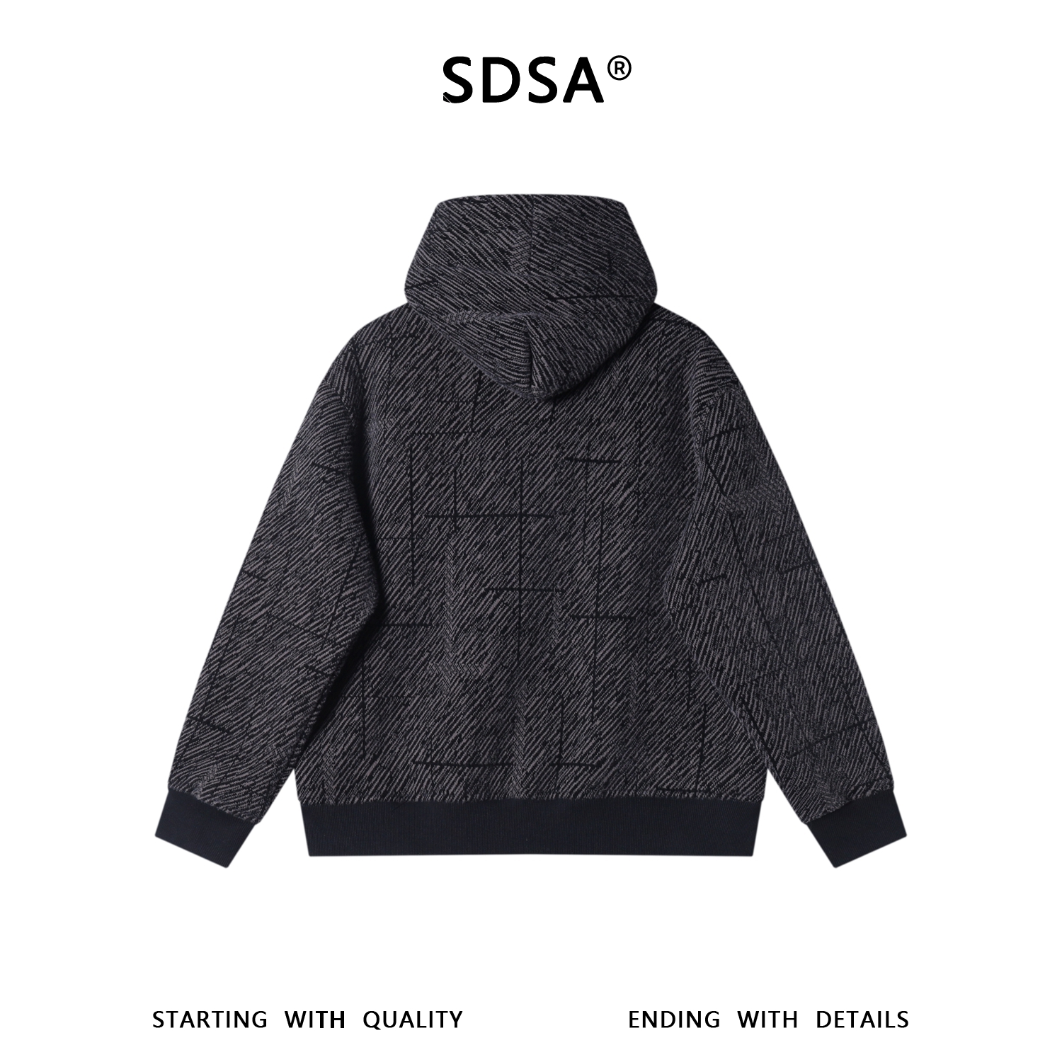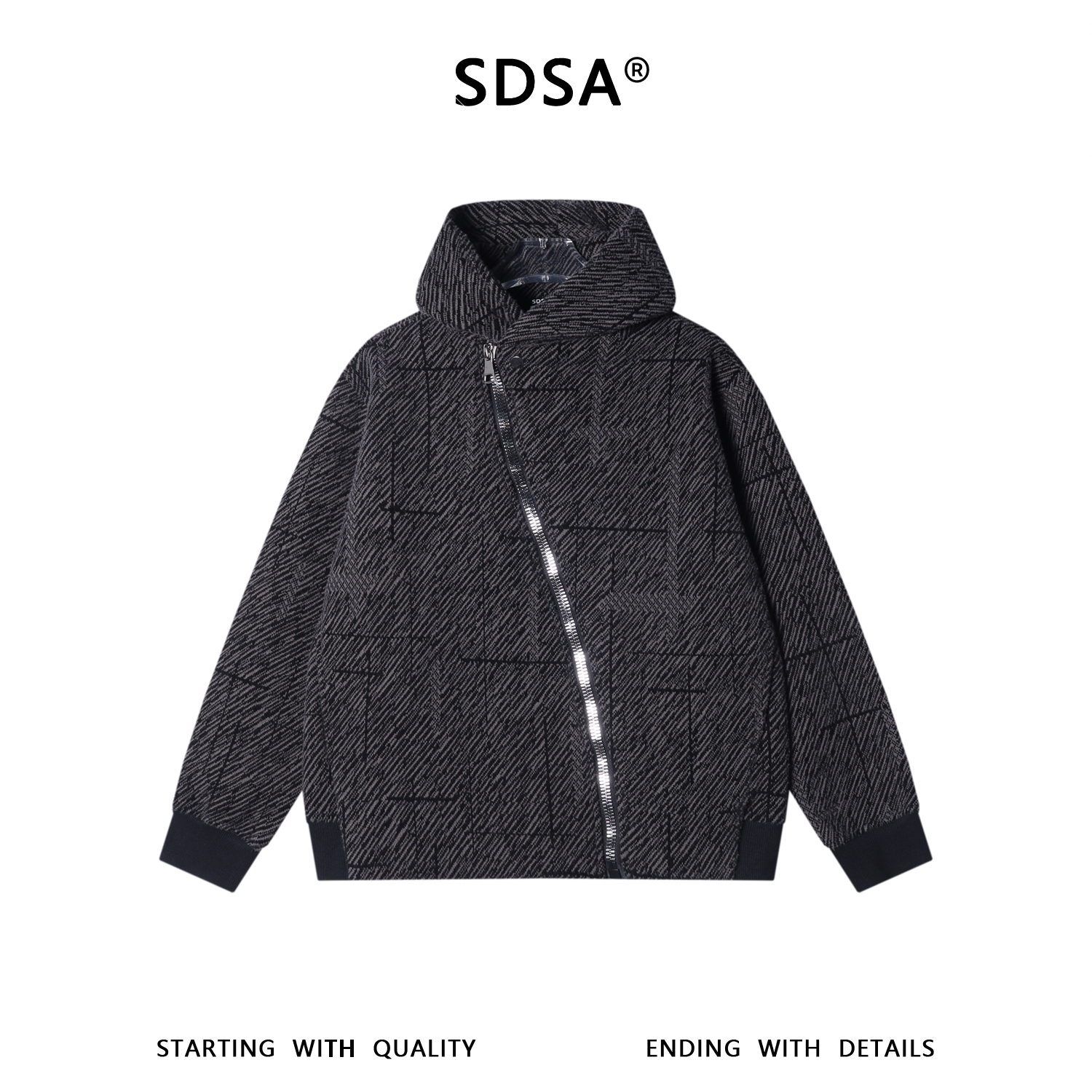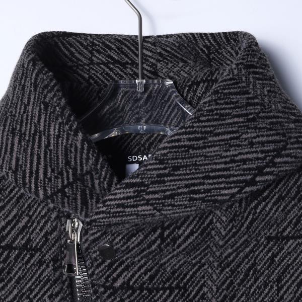 SDSA男士秋冬新款痞帅男装潮牌绒毛线条斜拉链连帽卫衣外套时尚