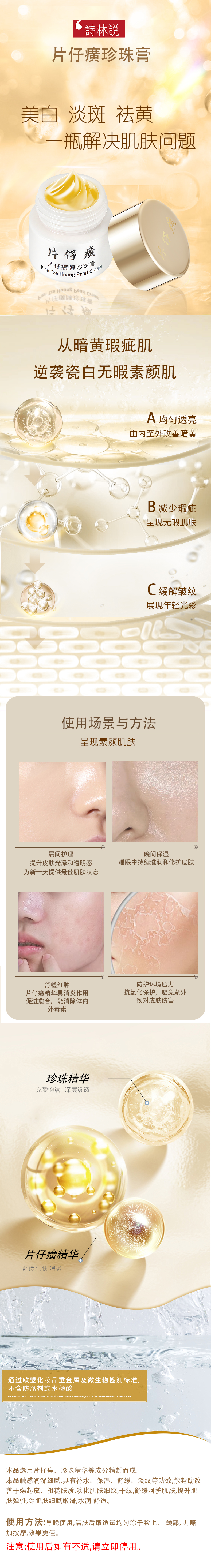 【保税仓】正品美白袪斑袪黄白皙红润 片仔癀珍珠膏20g