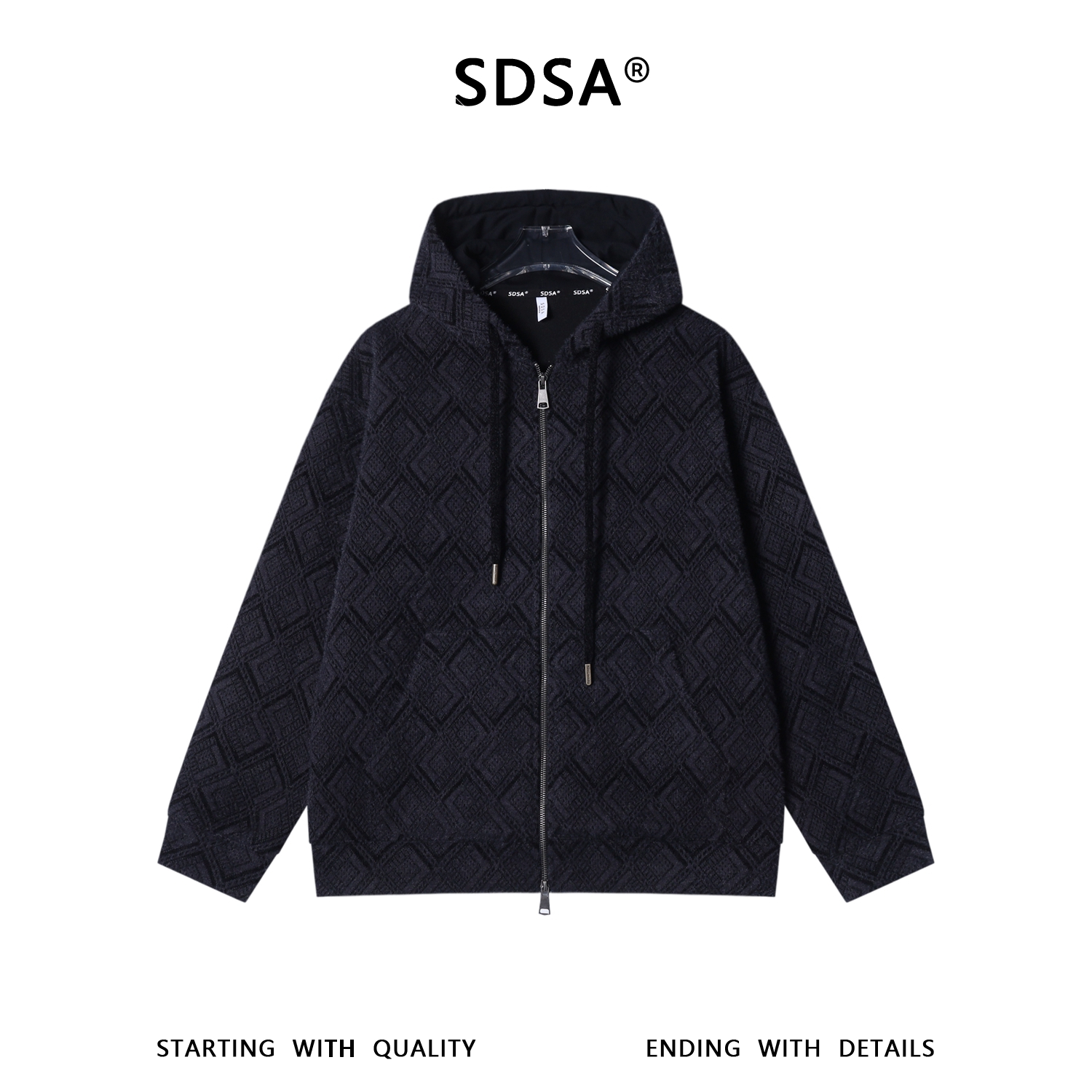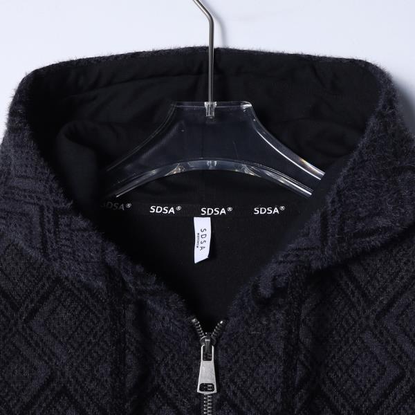 SDSA男士秋冬新款痞帅男装设计师菱形格绒毛拉链连帽卫衣宽松百搭