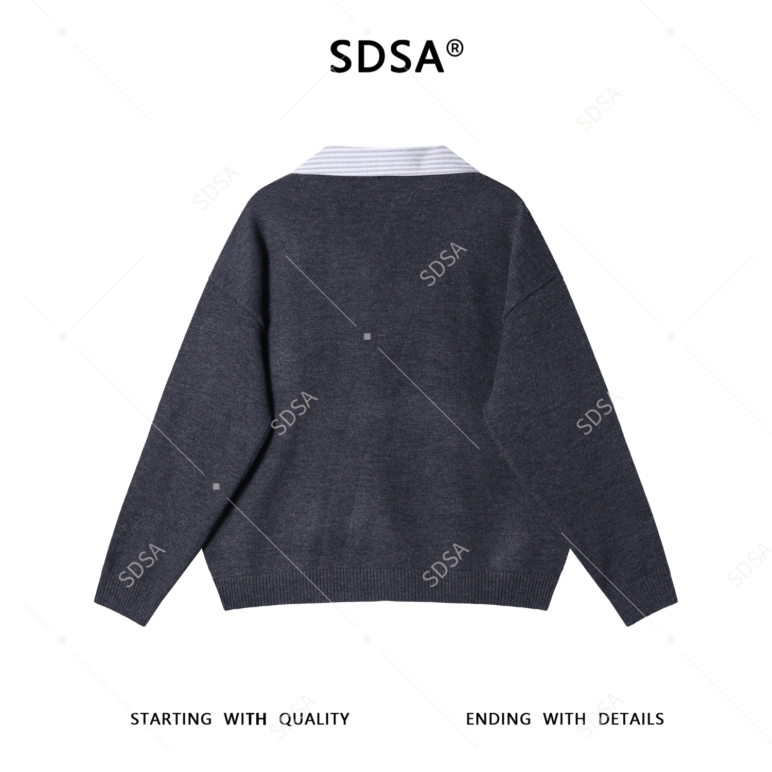 46763SDSA男士秋冬新款痞帅男装韩版拼接小V翻领毛衣百搭慵懒风上衣潮