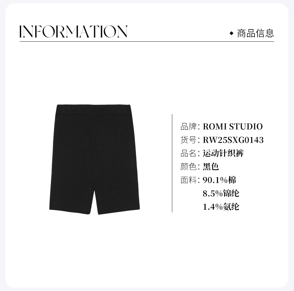 ROMI STUDIO“运动美学”棉质高弹松紧腰针织休闲短裤 RW25SXG0143