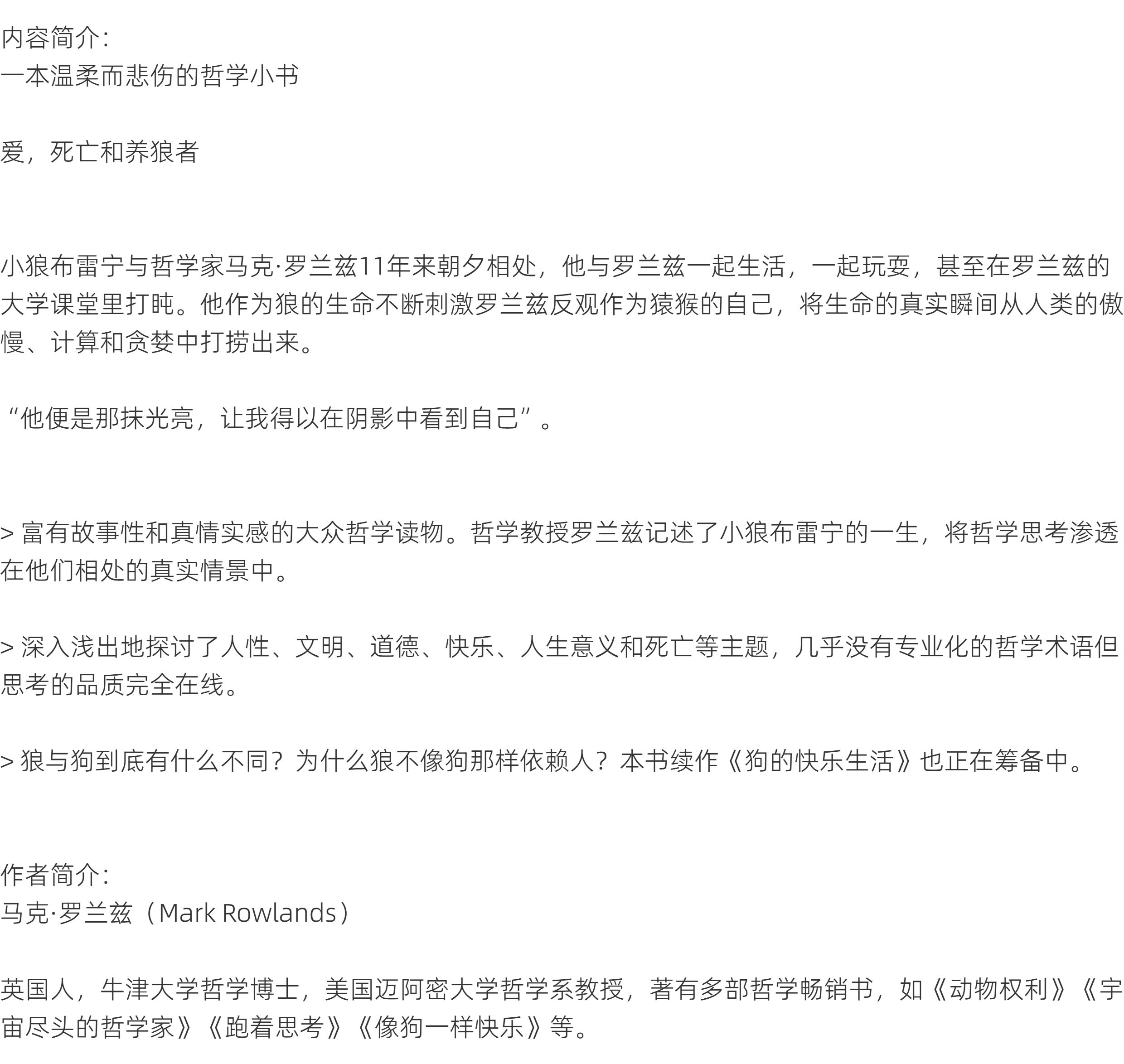 哲学家与狼 (英)马克·罗兰兹(Mark Rowlands) 著;路雅 译