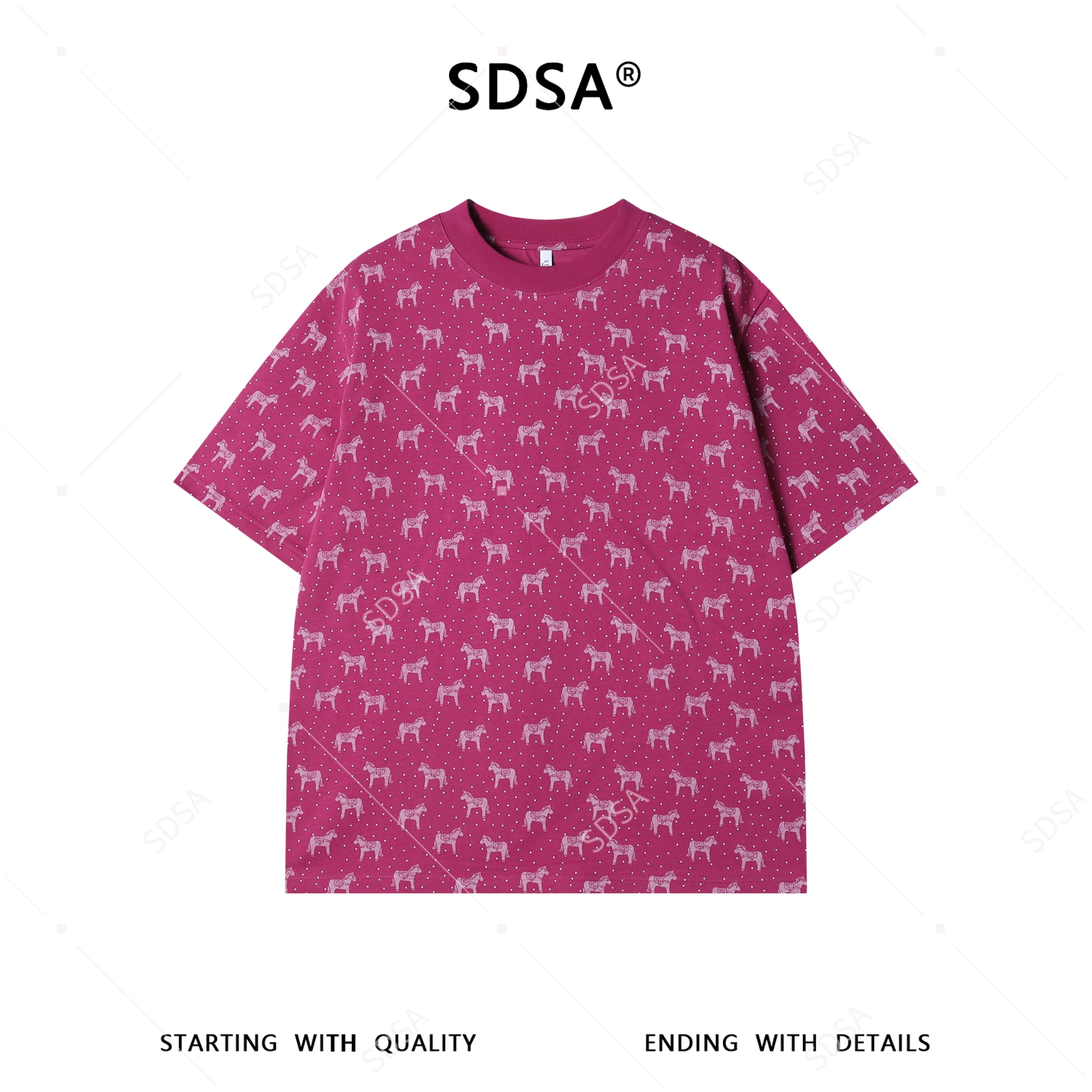 26T143SDSA男装2026新款高贵轻奢时尚波点满印奔马印花圆领短袖T恤百搭