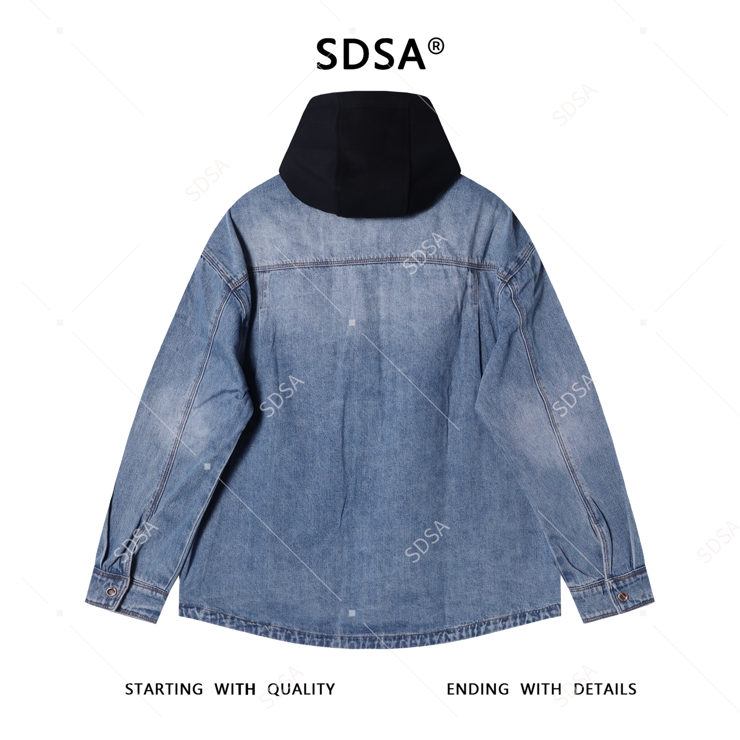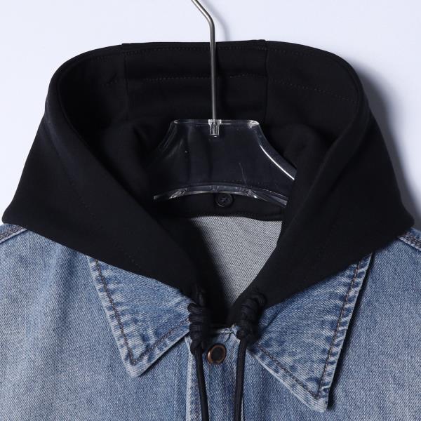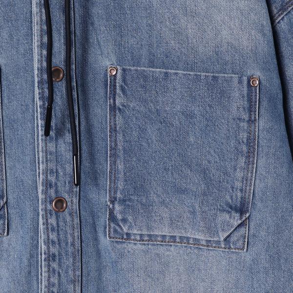8086SDSA男士秋冬新款痞帅男装简欧风宽松拼接连帽牛仔衬衫百搭时尚