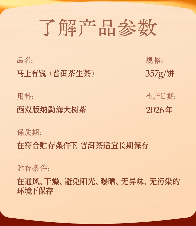 陈升号 2026年马上有钱357g(生茶)