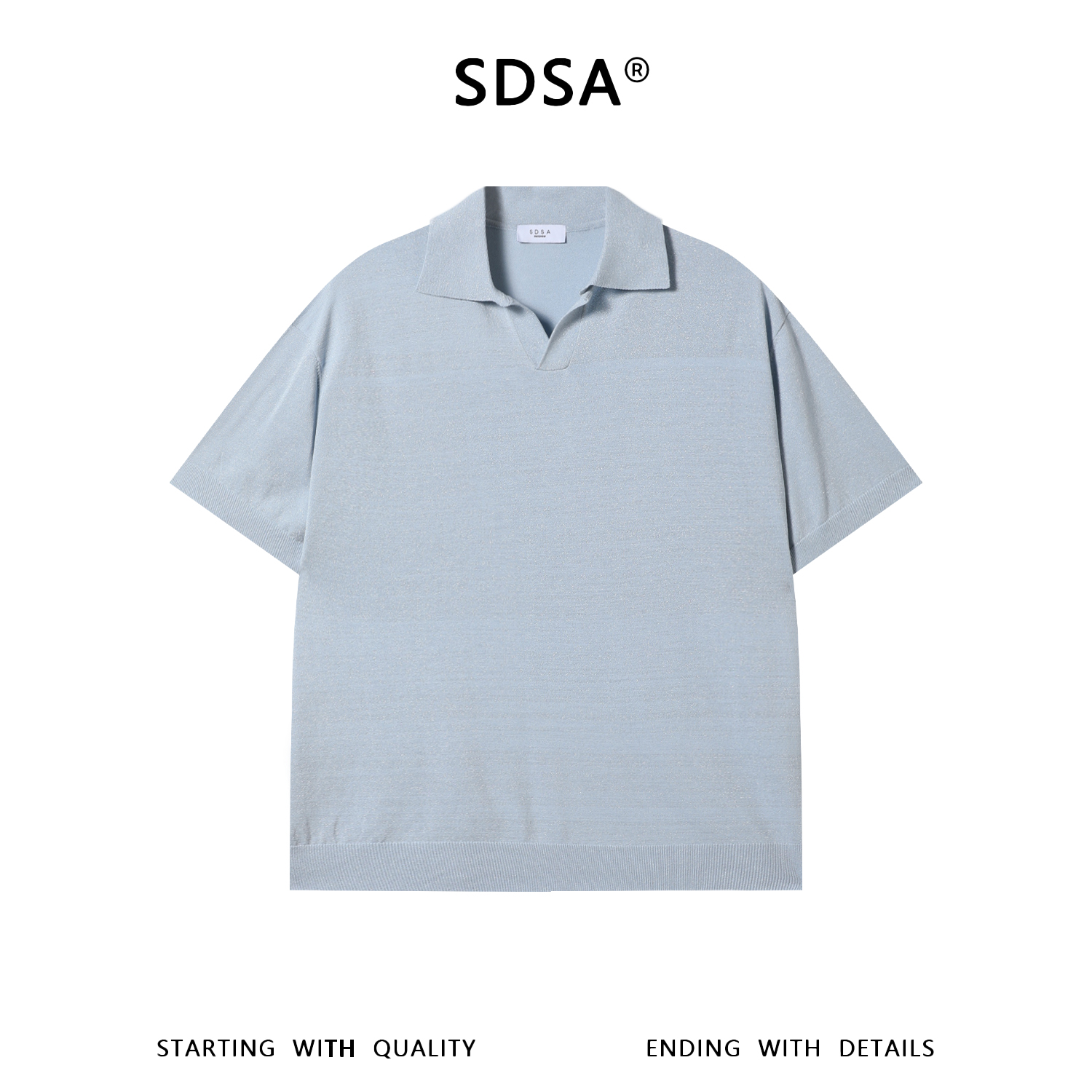 SDSA男装2026新款高贵轻奢老钱风纯色简约针织海鸥领短袖T恤百搭
