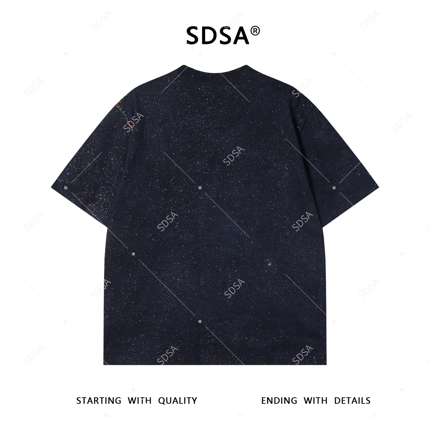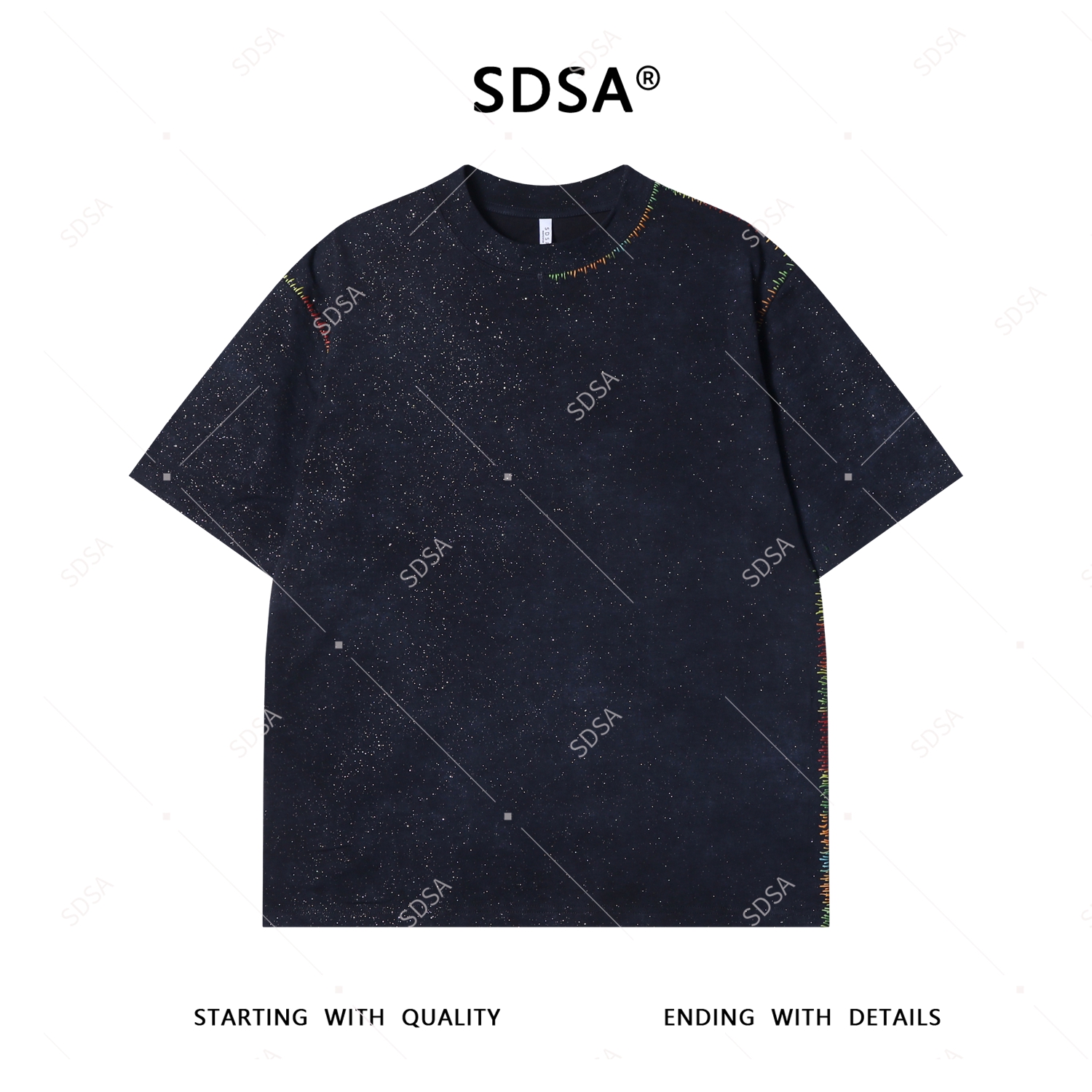T3858夏季高级感新款男士美式满天星彩色缝线设计短袖T恤休闲圆领上衣
