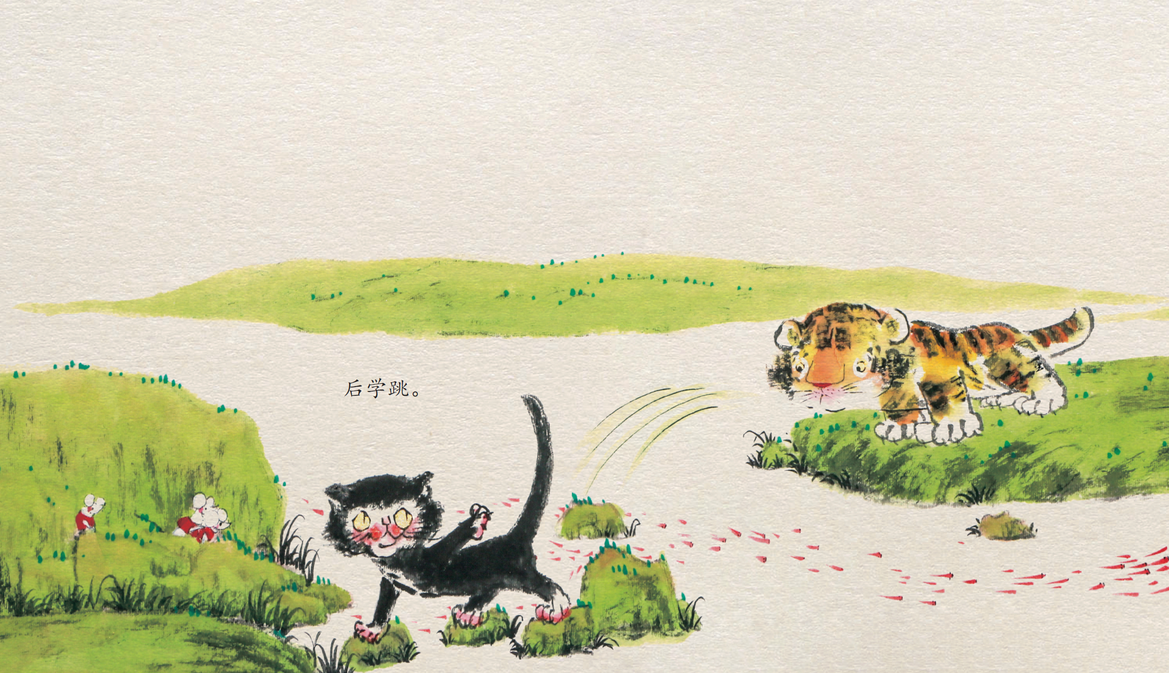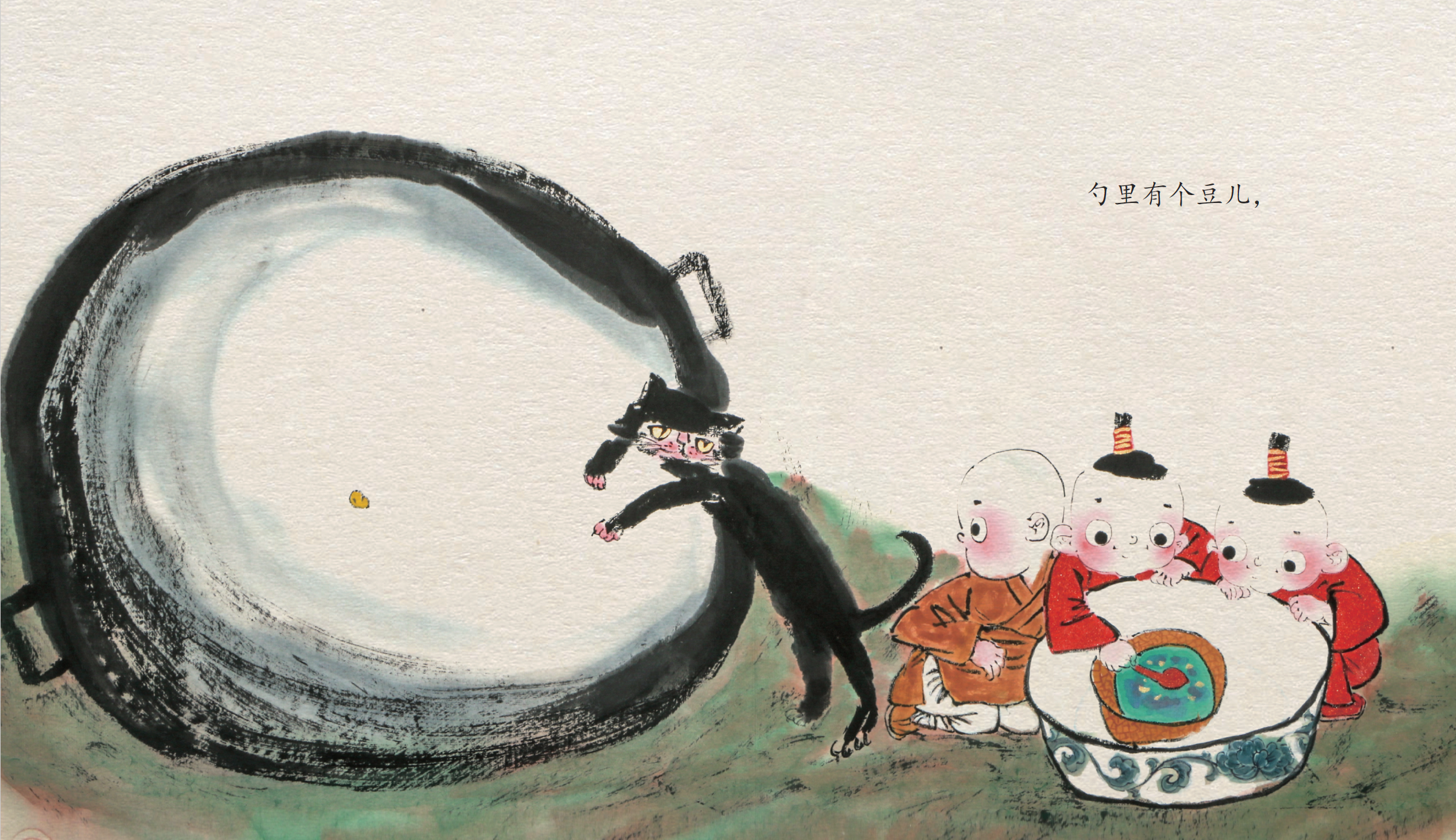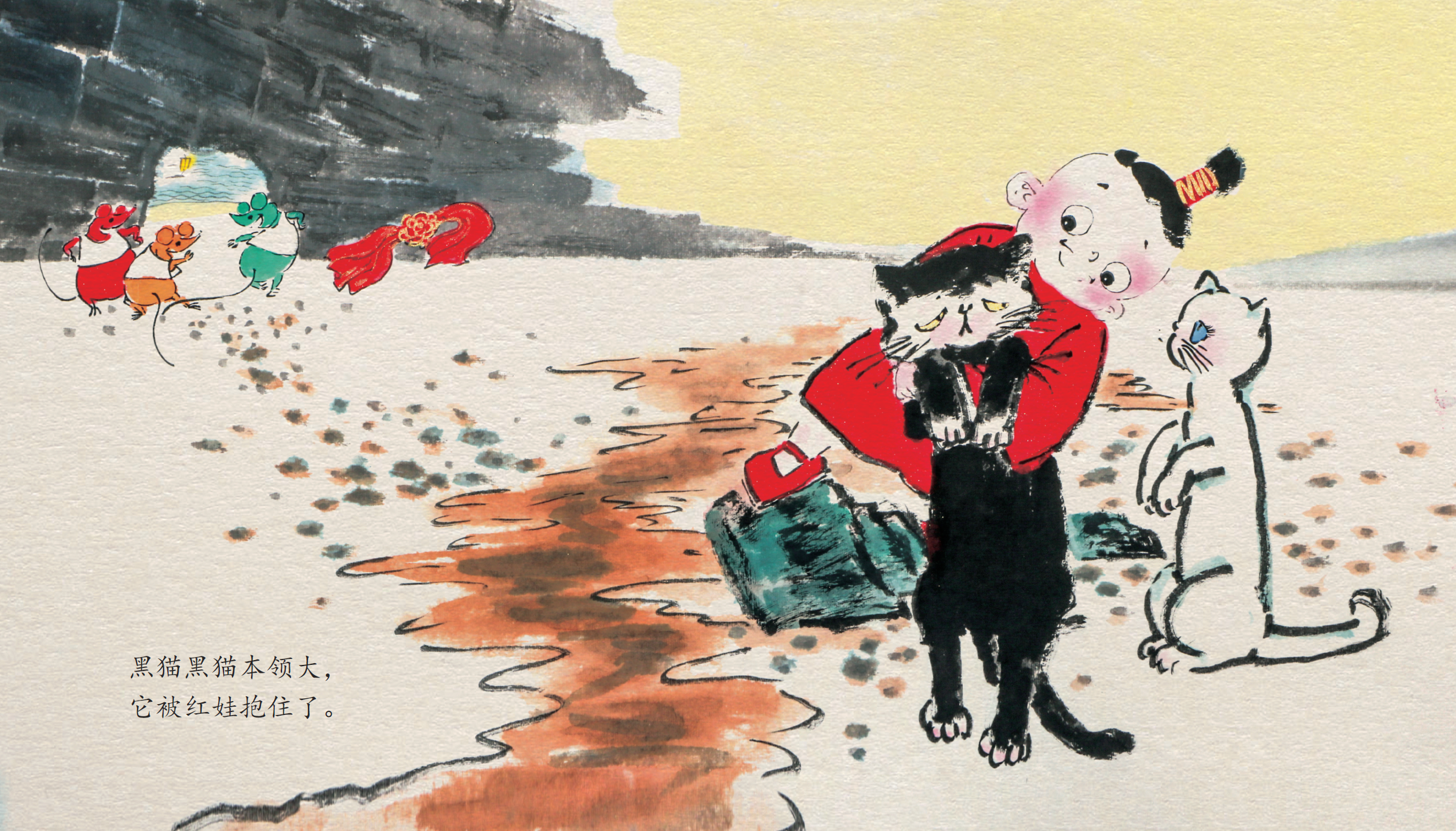 由淄博师范高等专科学校美术系教授、中国美术家协会会员赵红云老师主创的《“红娃”的中国故事(第二辑):中华经典童谣》是一套中国画儿童绘本,包括了《豆豆不见了》《谁的本领大》《花花虎和嘿嘿猫》《拍一拍 比一比》和《香瓜出嫁了》五首流传许久的中华传统经典童谣。这五部作品均在“沿黄九省(区)原创儿童图画书素材创意大赛”中获奖。这些童谣来自中国民间,文本经过改编后再由画家赵红云老师通过“红娃”这个可爱的形象将画面串联起来,把孩子们喜爱的自然界中的大山、大风、城墙、老鼠、花猫、老虎、蔬菜等事物,用中国国画的方式,结合童谣展现出来,让孩子们小小的心灵亲近传统,触摸自然,感受汉语的韵律之美、国画的墨韵之美。