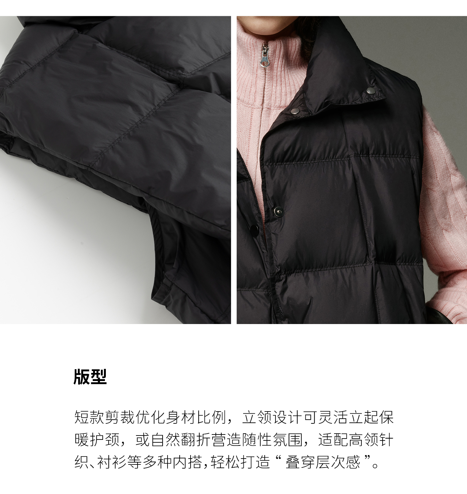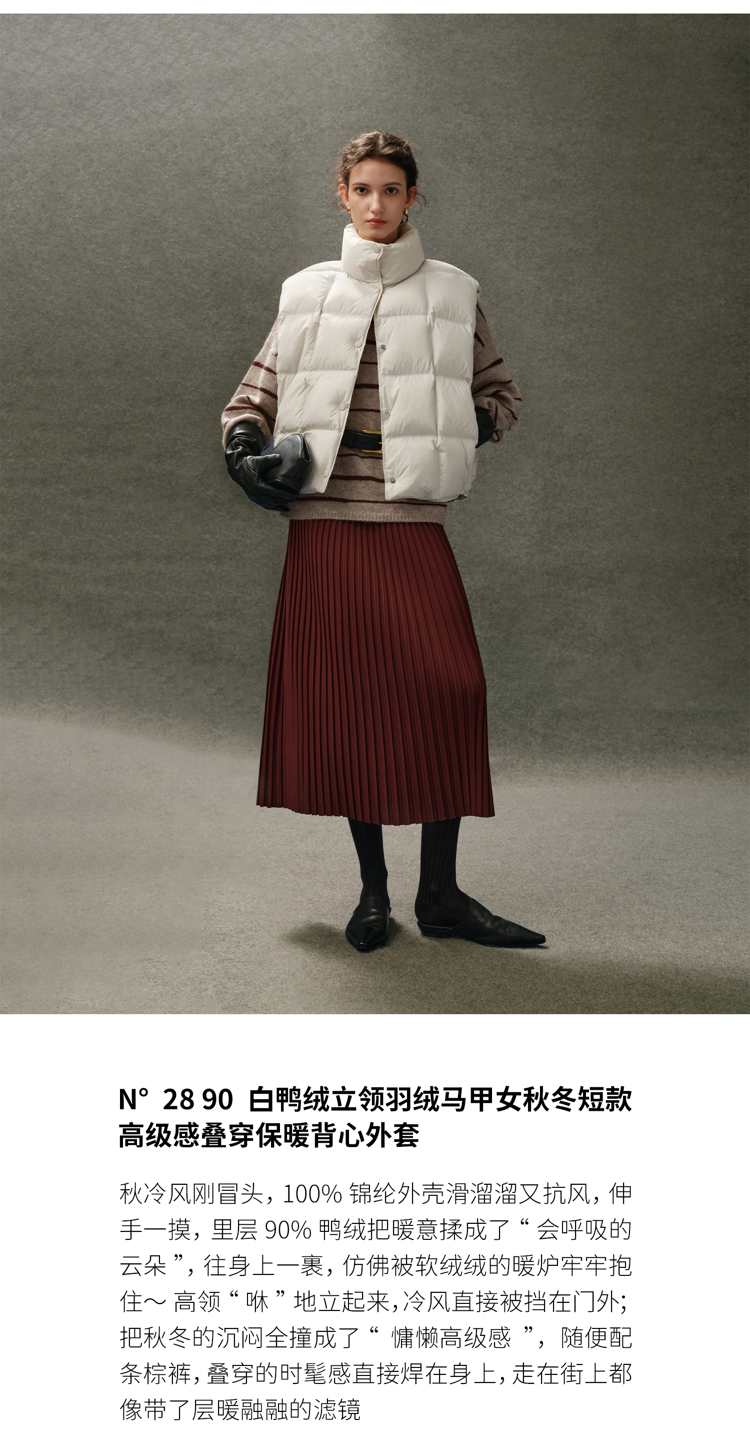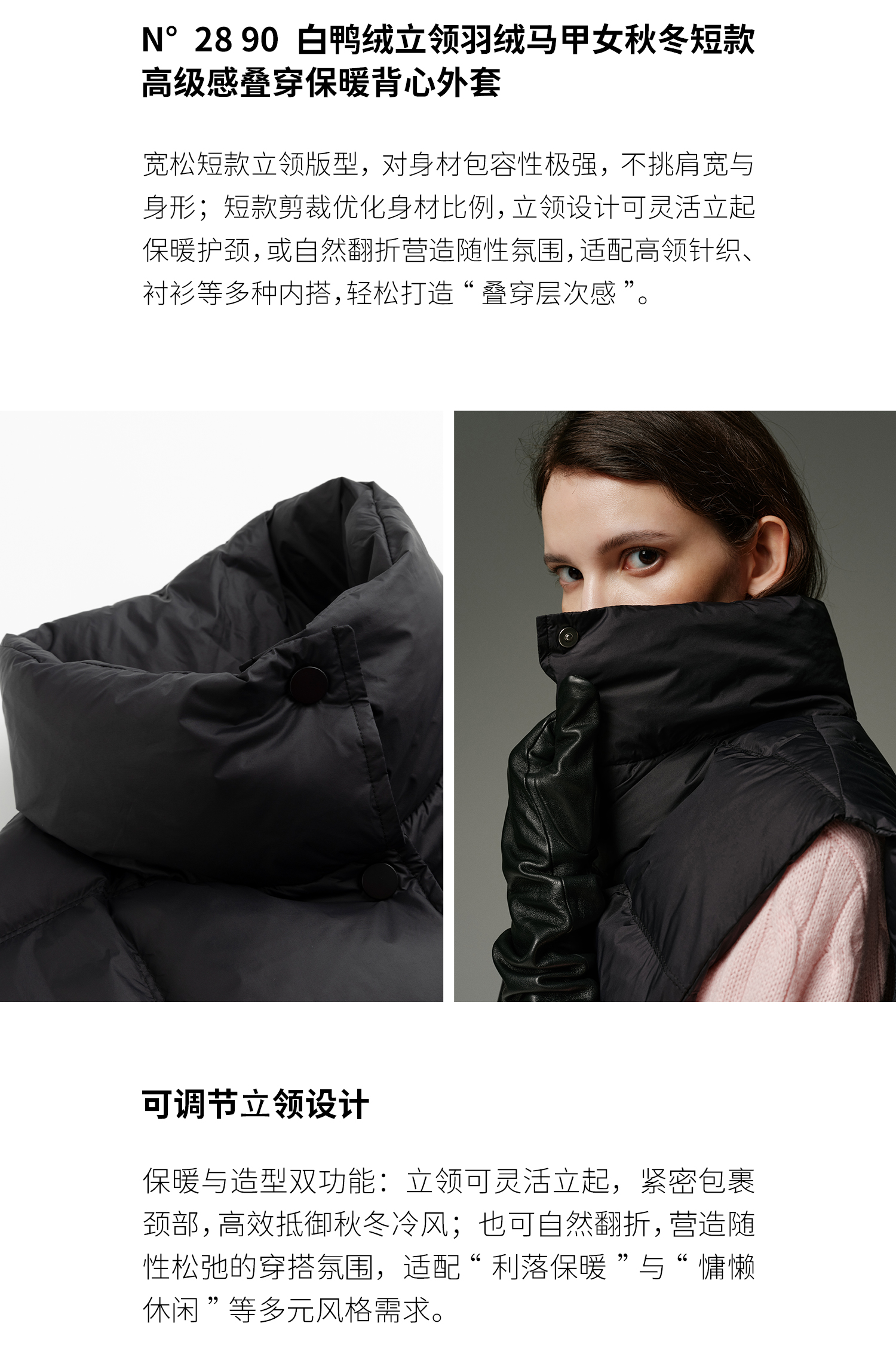 N°28 90白鸭绒立领羽绒马甲女秋冬短款高级感叠穿保暖背心外套 8955A1R906