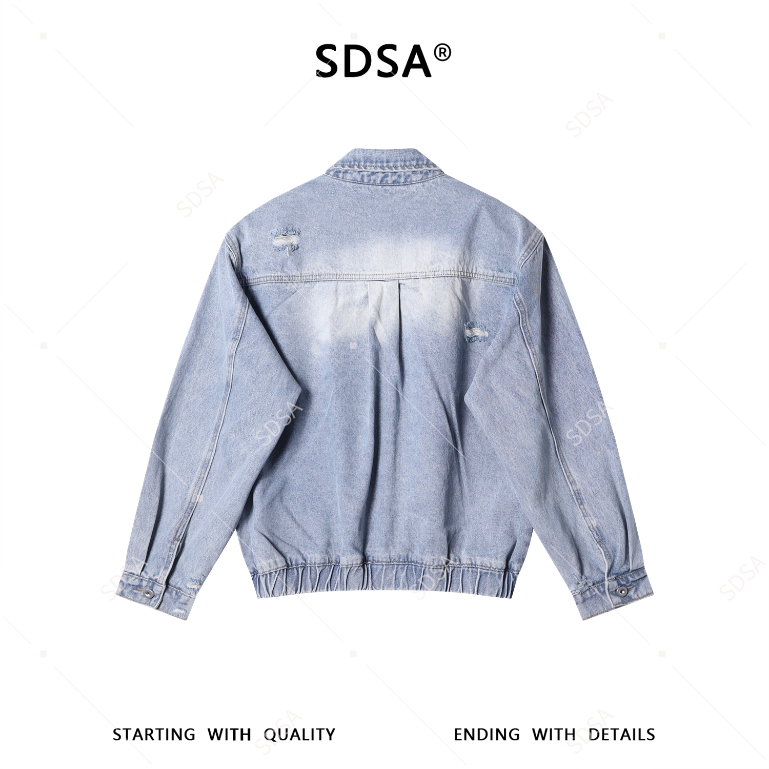 SDSA男装2026新款高贵轻奢美式复古做旧磨白磨破夹克牛仔外套百搭