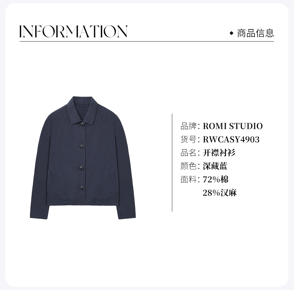 ROMI STUDIO“休闲复古”盐缩洗水麻棉做旧原生感短外套RWCASY4903
