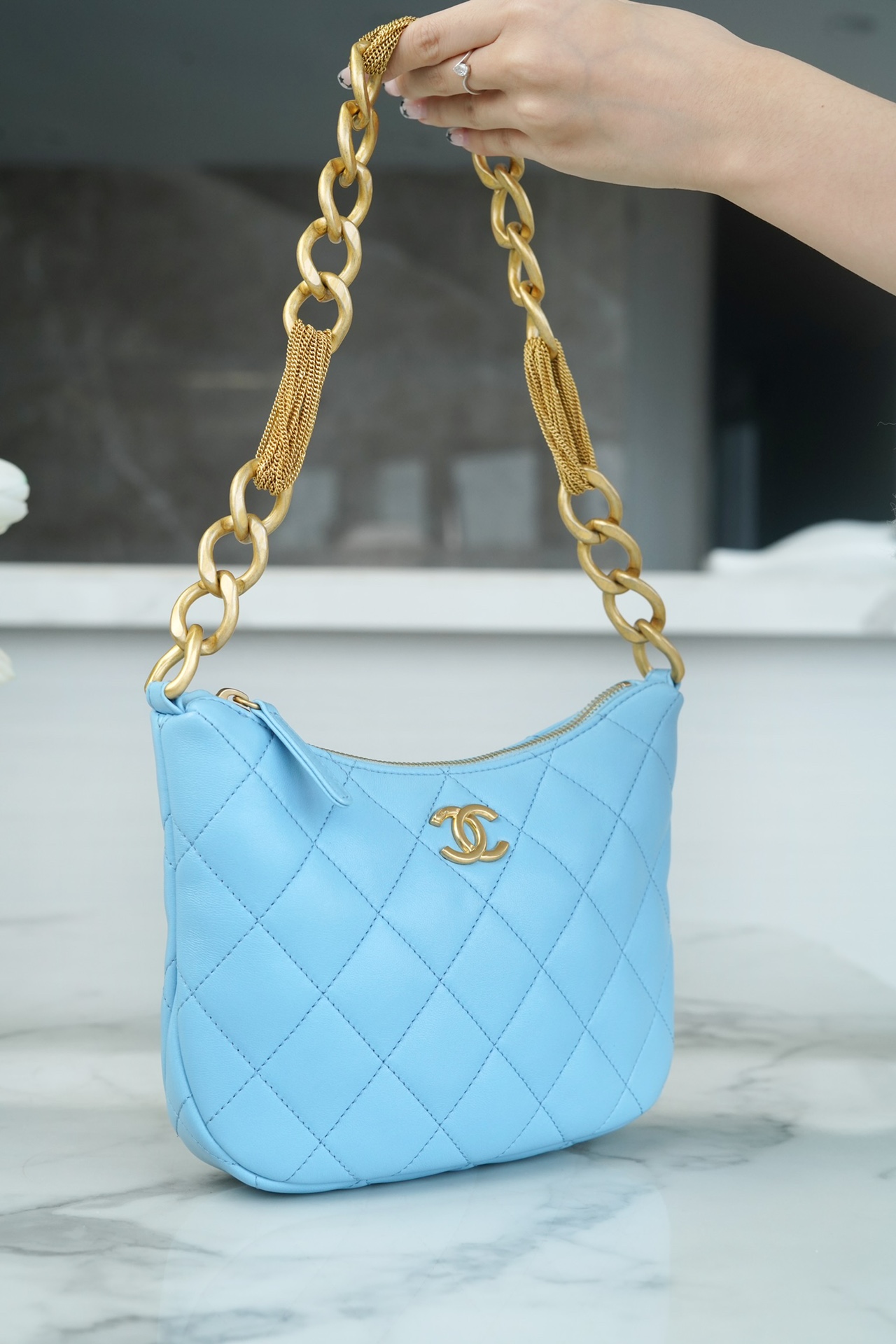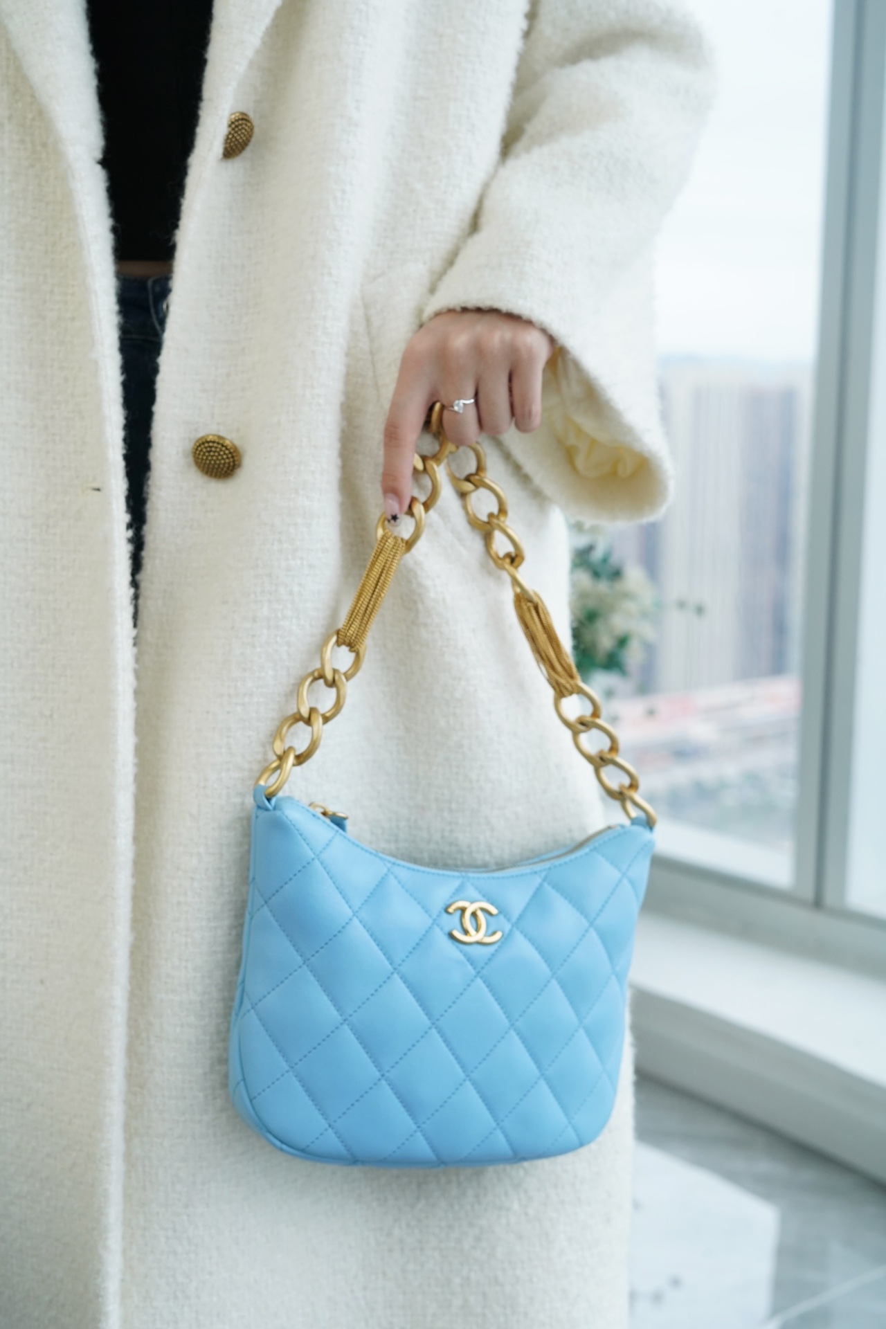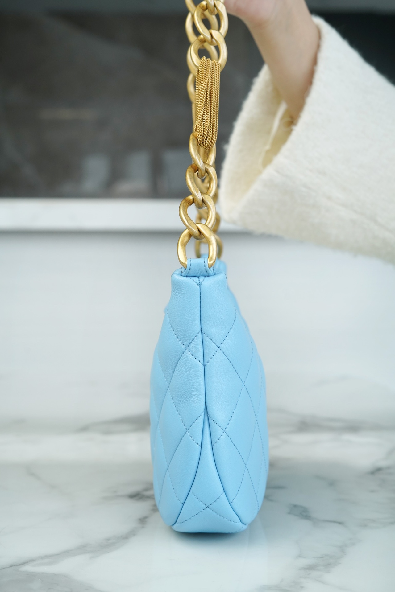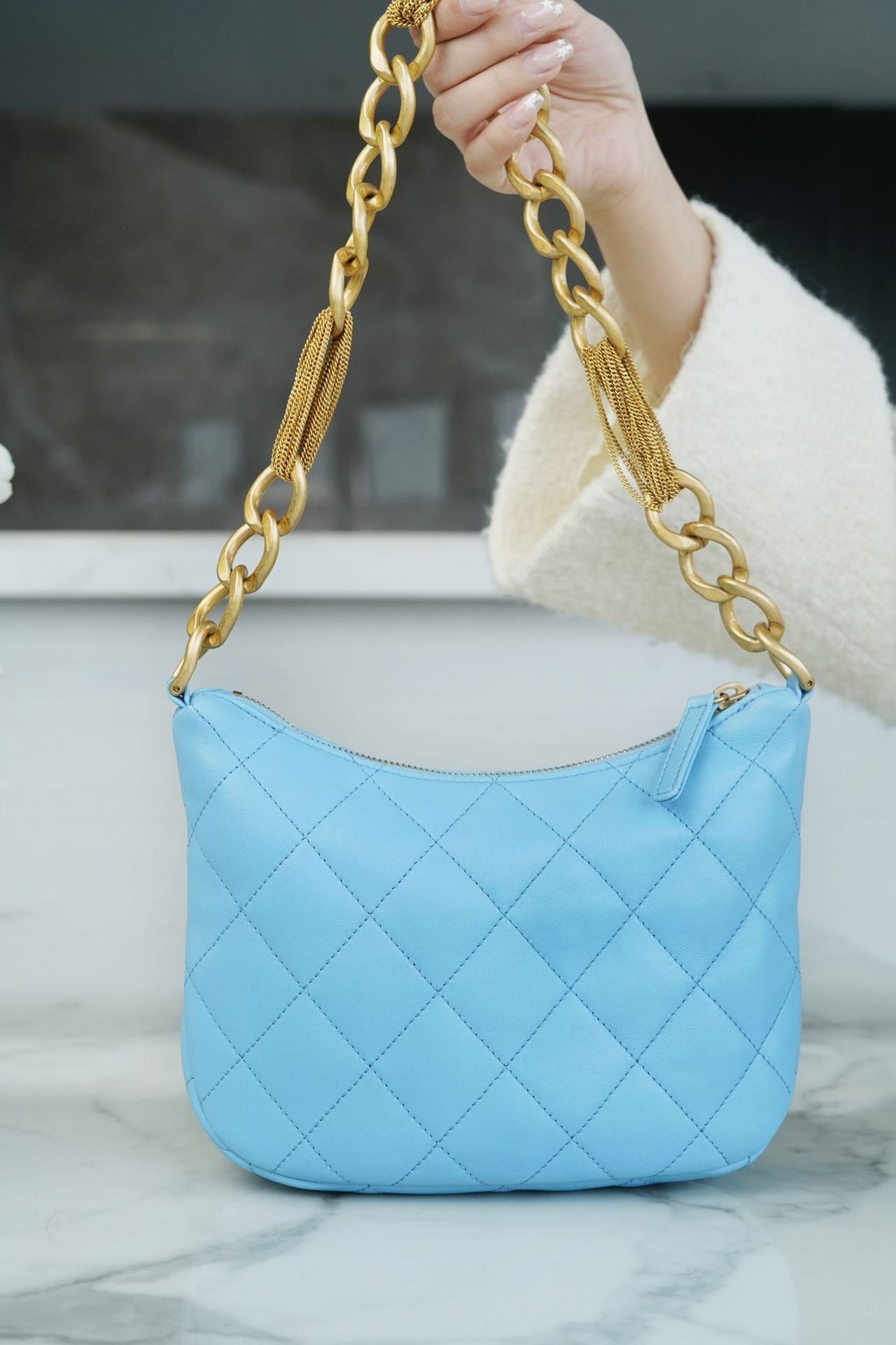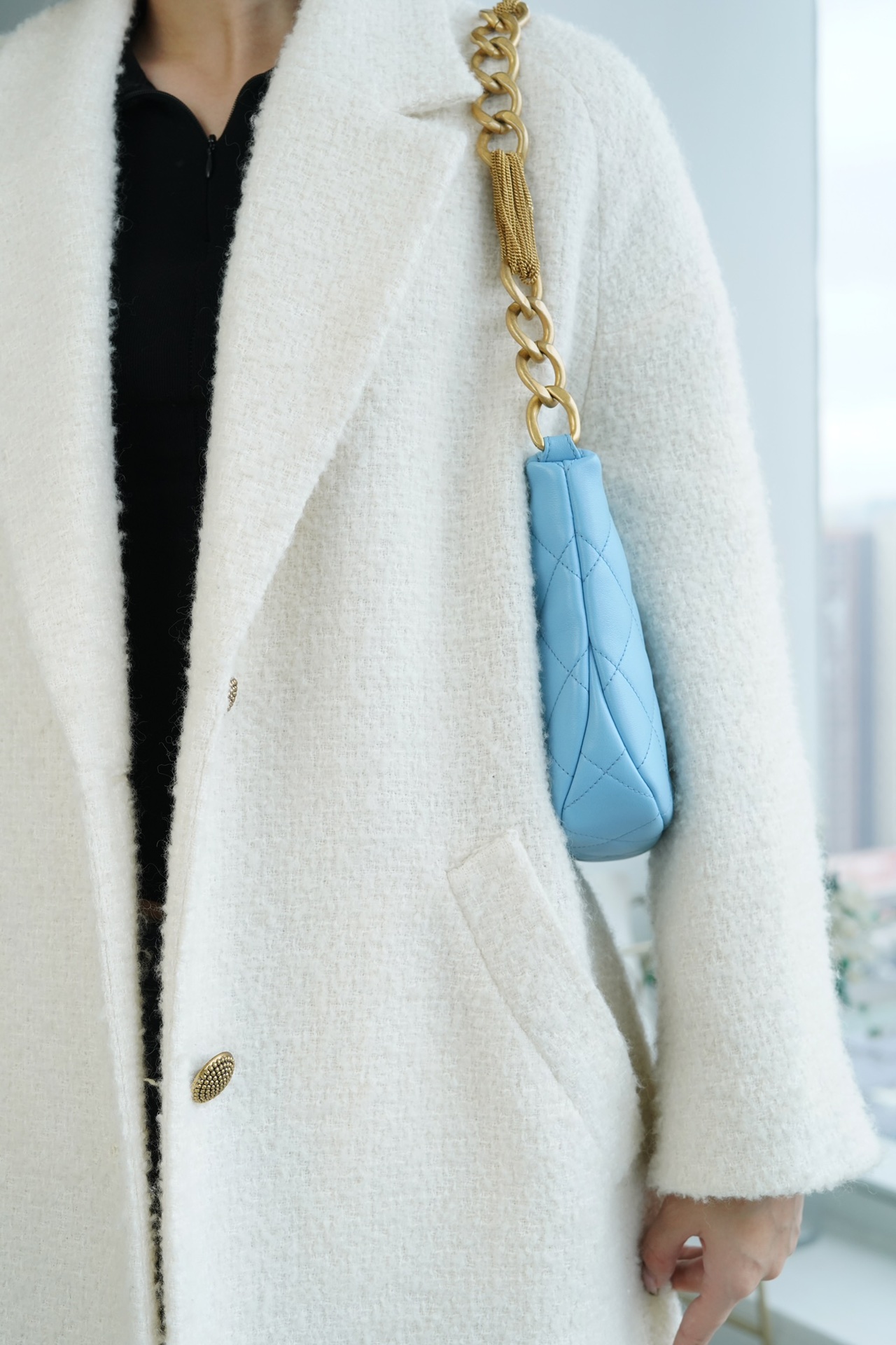 包包整体轻盈不厚重,独特又复古的五金链美到极致,工艺感极强,经典的黑金配色?菱格,流苏控可以冲,吸睛力我给??分!