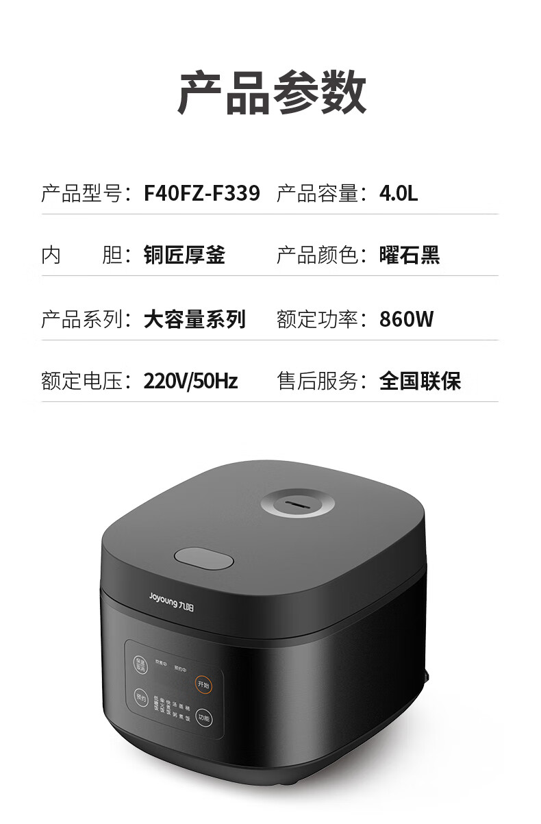 九阳(Joyoung) 电饭煲多功能家用电饭锅智能预约定时智能菜单 F40FZ-F339 【肖战推荐】