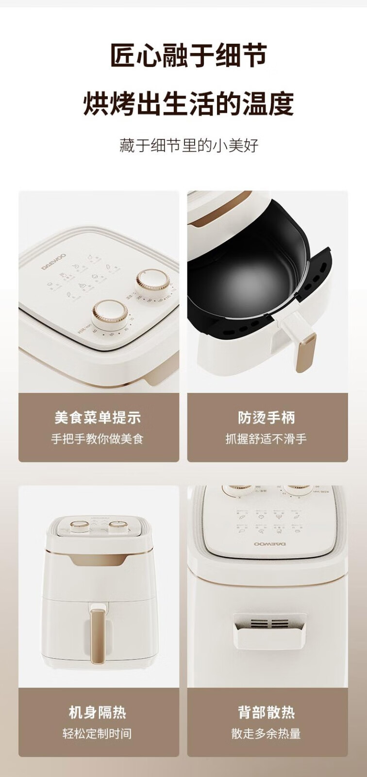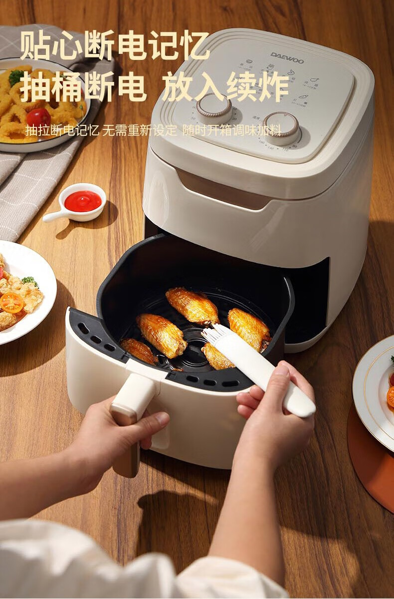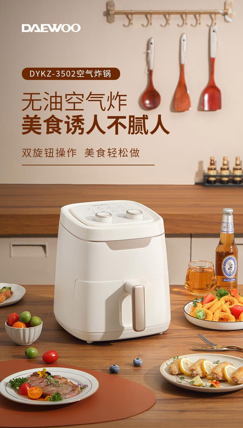 大宇(DAEWOO) 多功能无油烤薯条不粘涂层空气炸锅DYKZ-3502