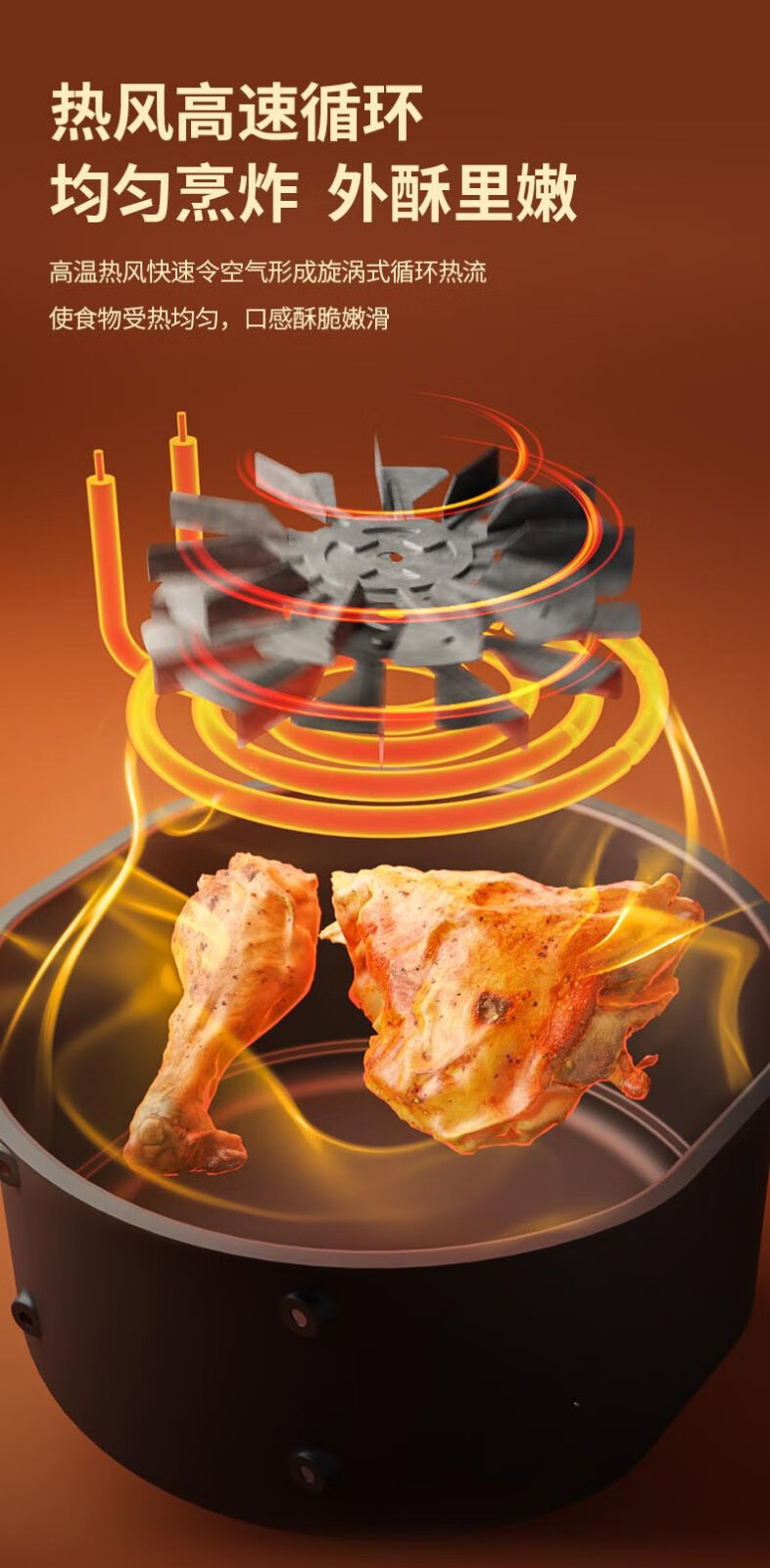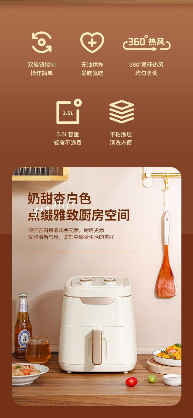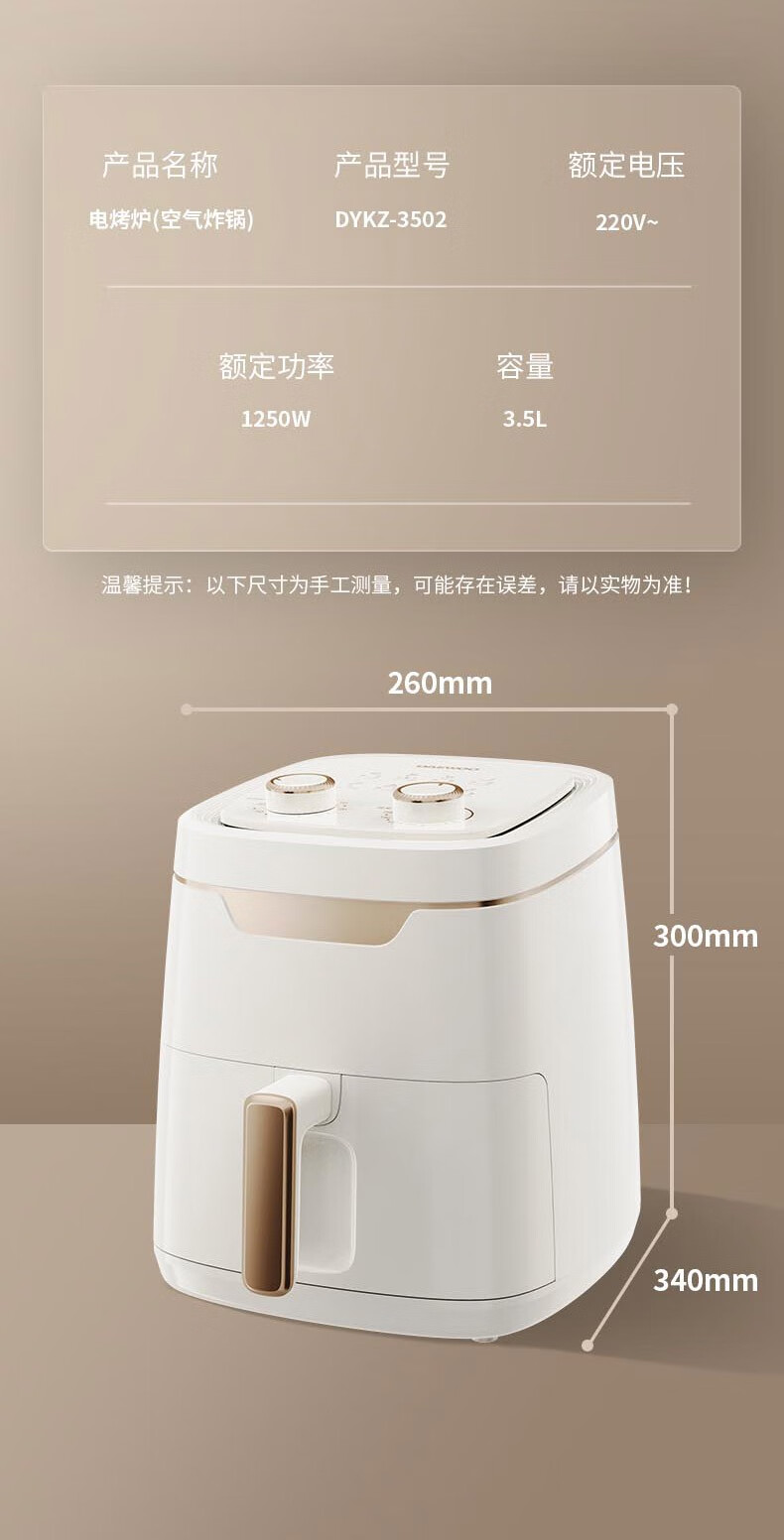 大宇(DAEWOO) 多功能无油烤薯条不粘涂层空气炸锅DYKZ-3502