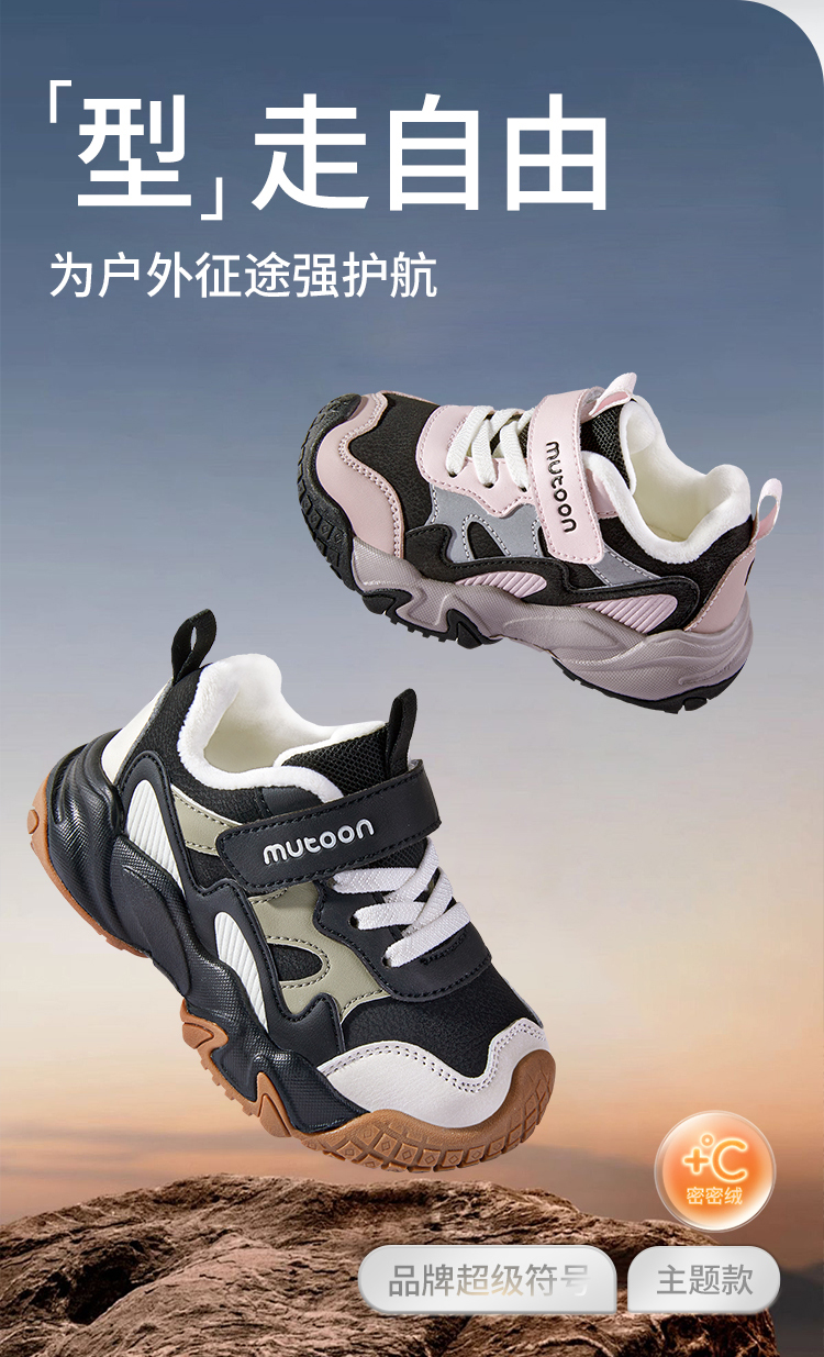 牧童男童鞋2025冬季新款儿童鞋女轻便减震户外运动鞋女童加绒棉鞋