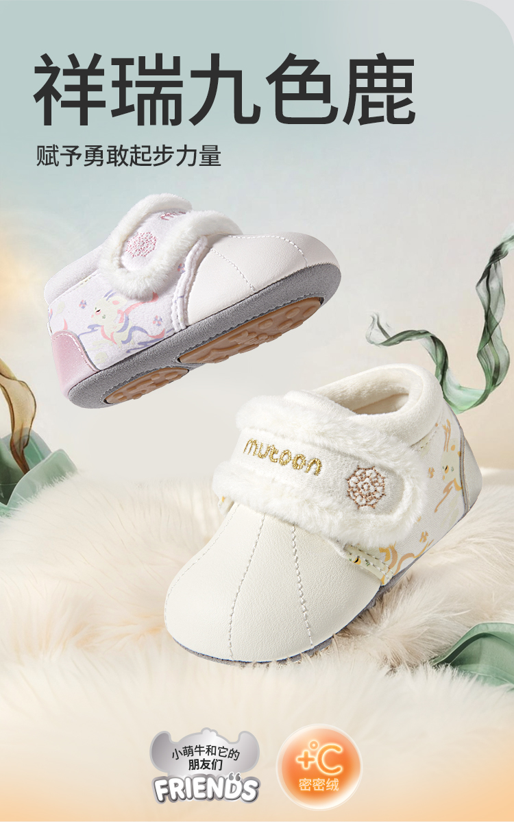 牧童婴儿步前鞋2025冬季新款国风九色鹿柔抱鞋女软底加绒男宝宝鞋
