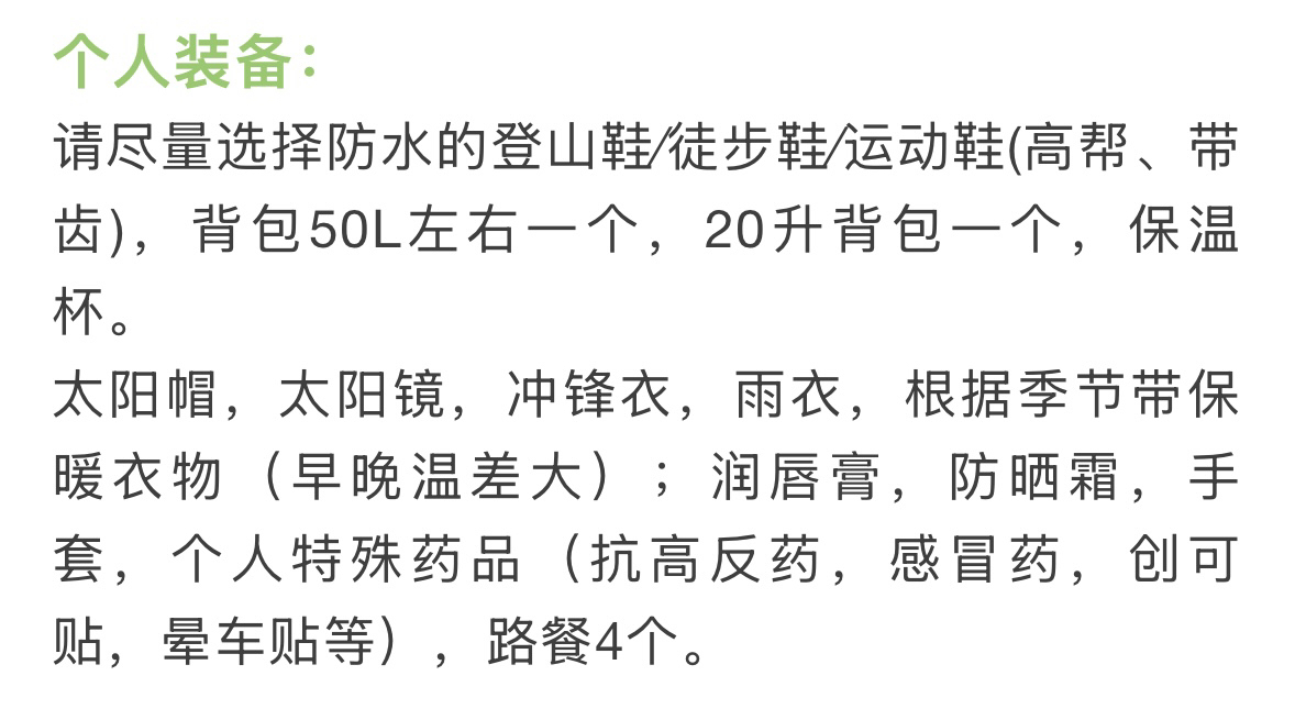 4、参与者报名即表示同意此约定,活动路线有难度和各种不确定性,所以领队可根据现场安全评估调整线路或取消活动,本着安全第一为准则组织活动。