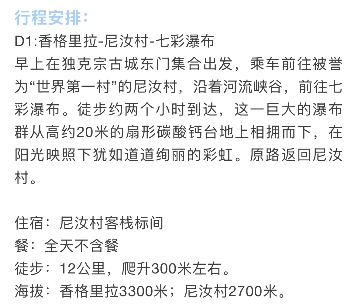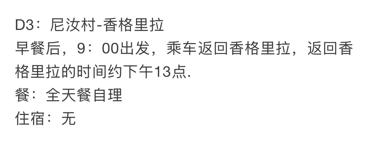 香格里拉-尼汝往返交通,尼汝村住宿2晚。