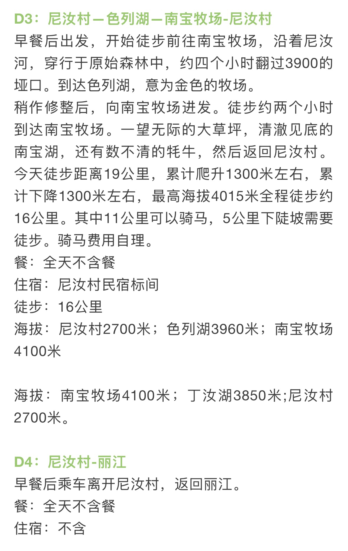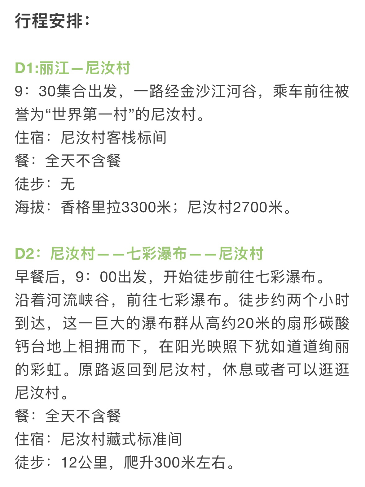 丽江-尼汝往返交通,尼汝村住宿3晚。