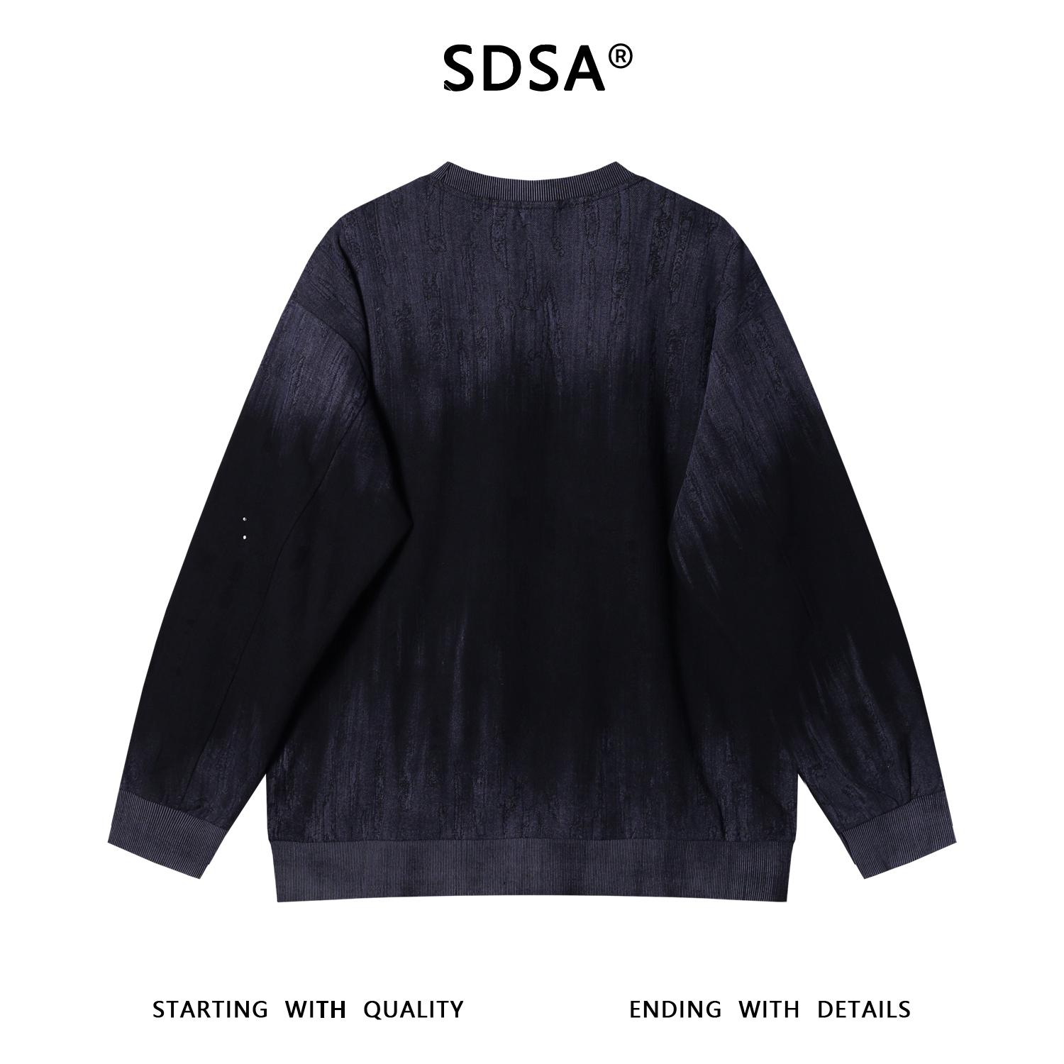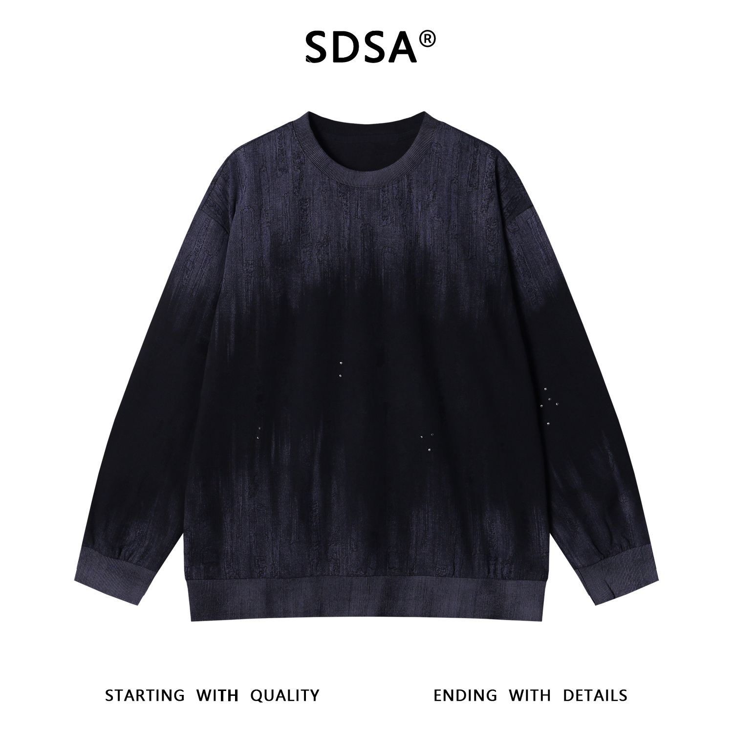 51650SDSA男士秋冬新款痞帅男装韩版渐变磨破圆领卫衣时尚休闲套头上衣