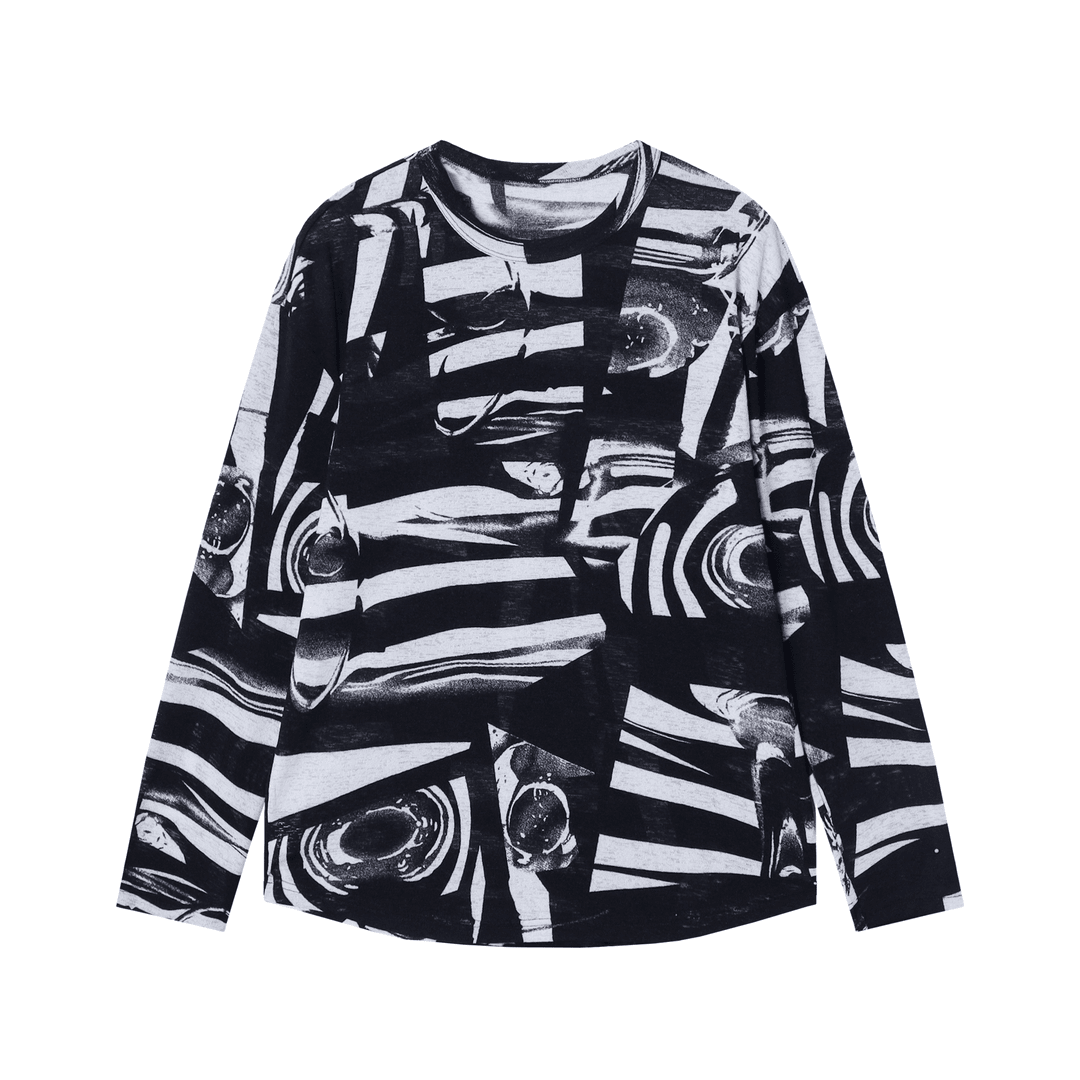 T4909SDSA男士秋冬新款痞帅男装街头泼墨十字印花半高领长袖T恤百搭潮