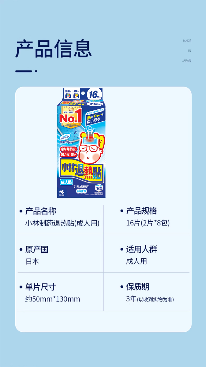 【香港直邮】发烧退热炎夏消暑 正品小林牌大人退热贴(16片装)