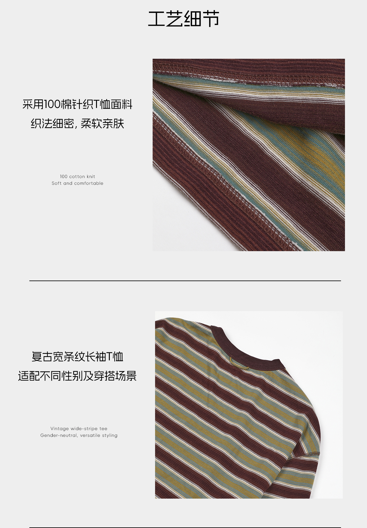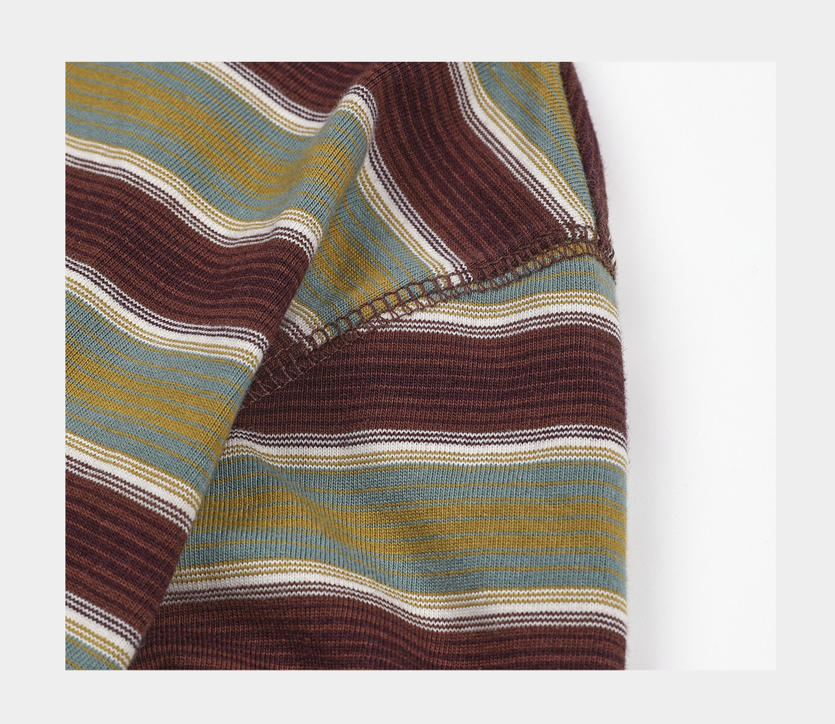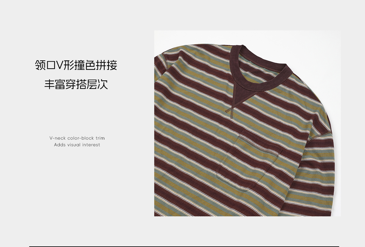 ROMI STUDIO“美式复古”棉质舒适条纹撞色V领长袖T恤 RWDSSD1751