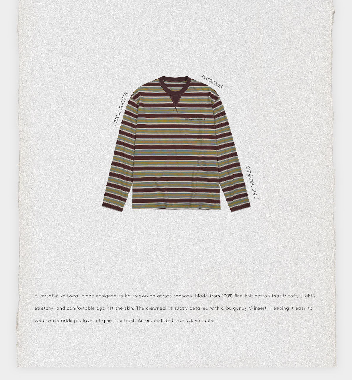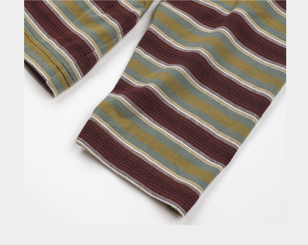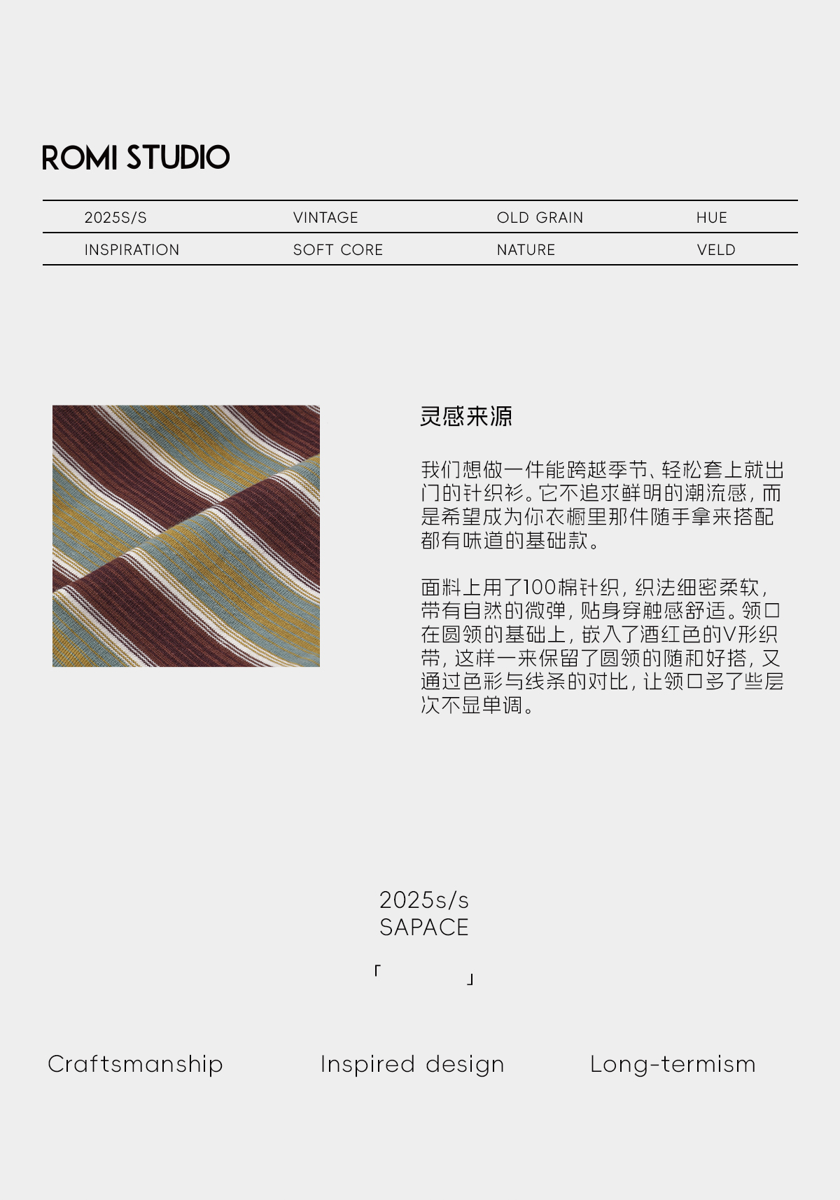 ROMI STUDIO“美式复古”棉质舒适条纹撞色V领长袖T恤 RWDSSD1751