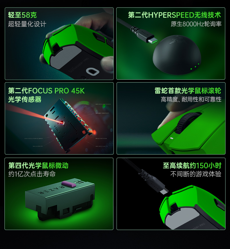 Razer雷蛇电竞绿系列 毒蝰V3Pro专业版/炼狱蝰蛇V4专业版/猎魂光蛛V3专业竞技版8K/旋风黑鲨V3专业版/幻影战狼V3专业版8K/妖狐【雷蛇官方直营,延保一年】