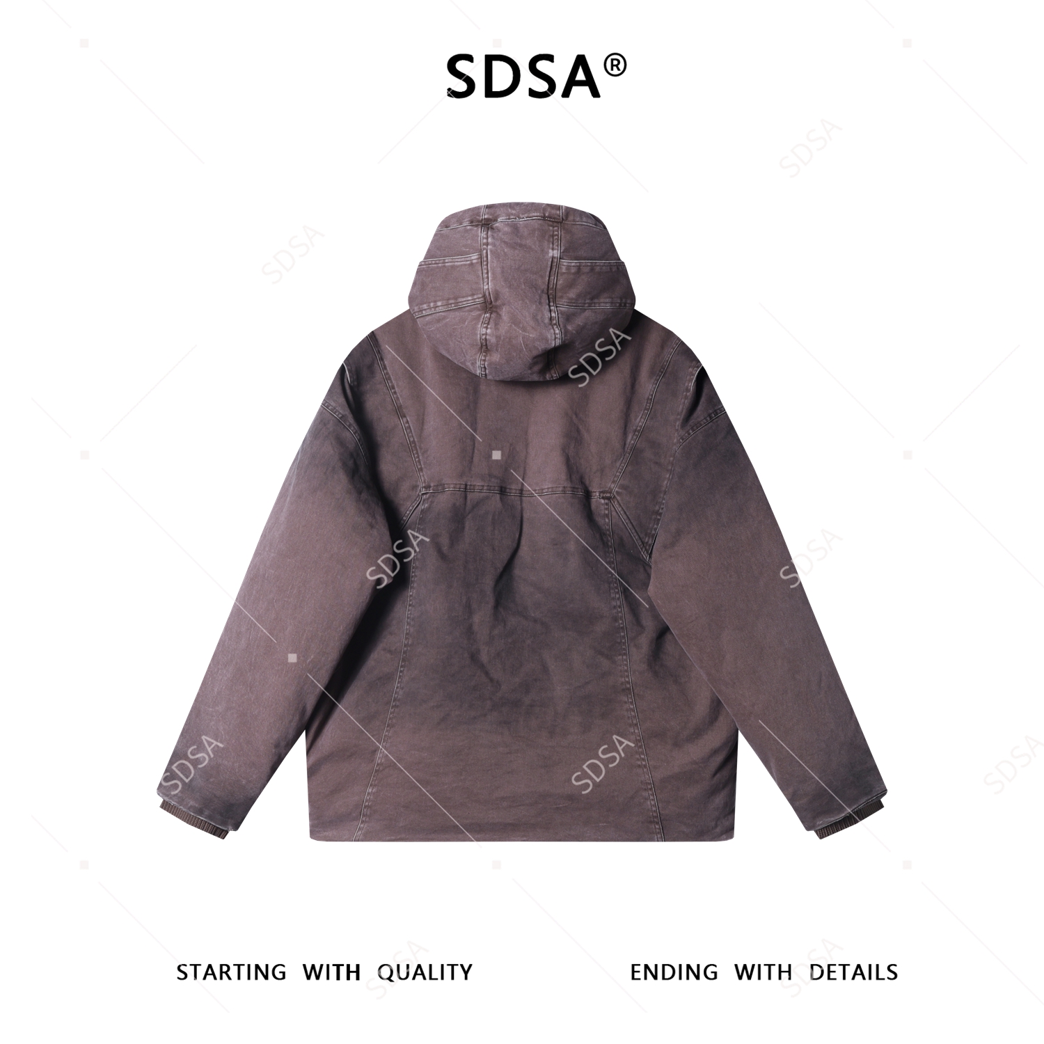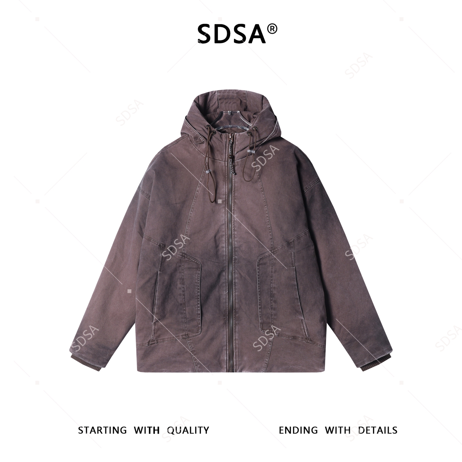 SDSA男士秋冬新款痞帅男装美式复古做旧牛仔立领连帽羽绒服百搭