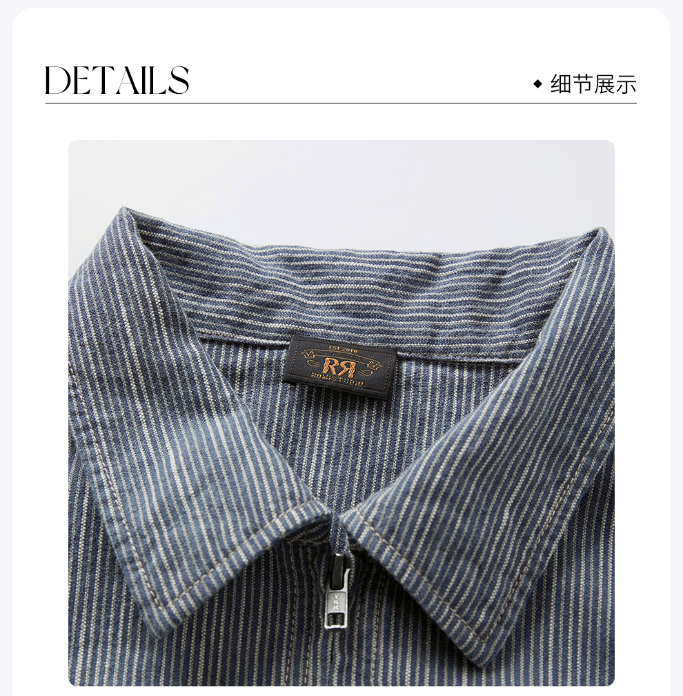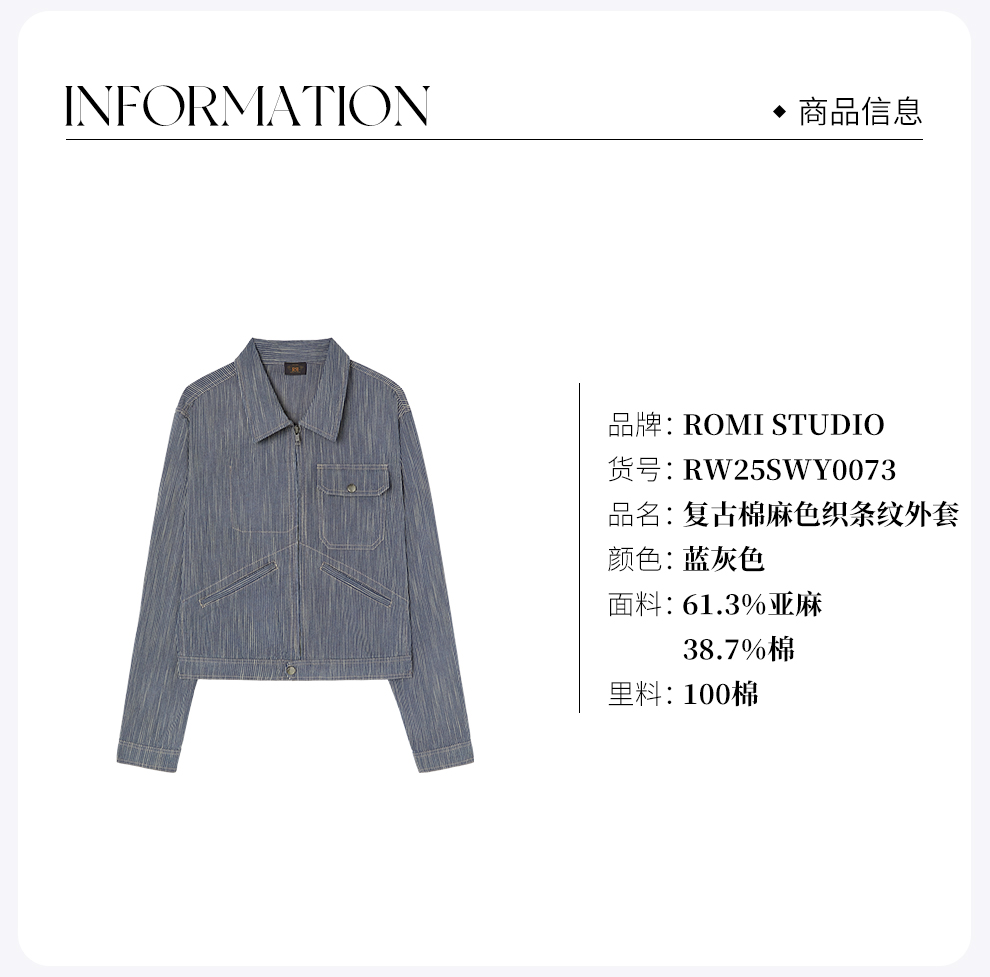 ROMI STUDIO“美式复古”亚麻棉混纺条纹小短款衬衫外套RW25SWY0073