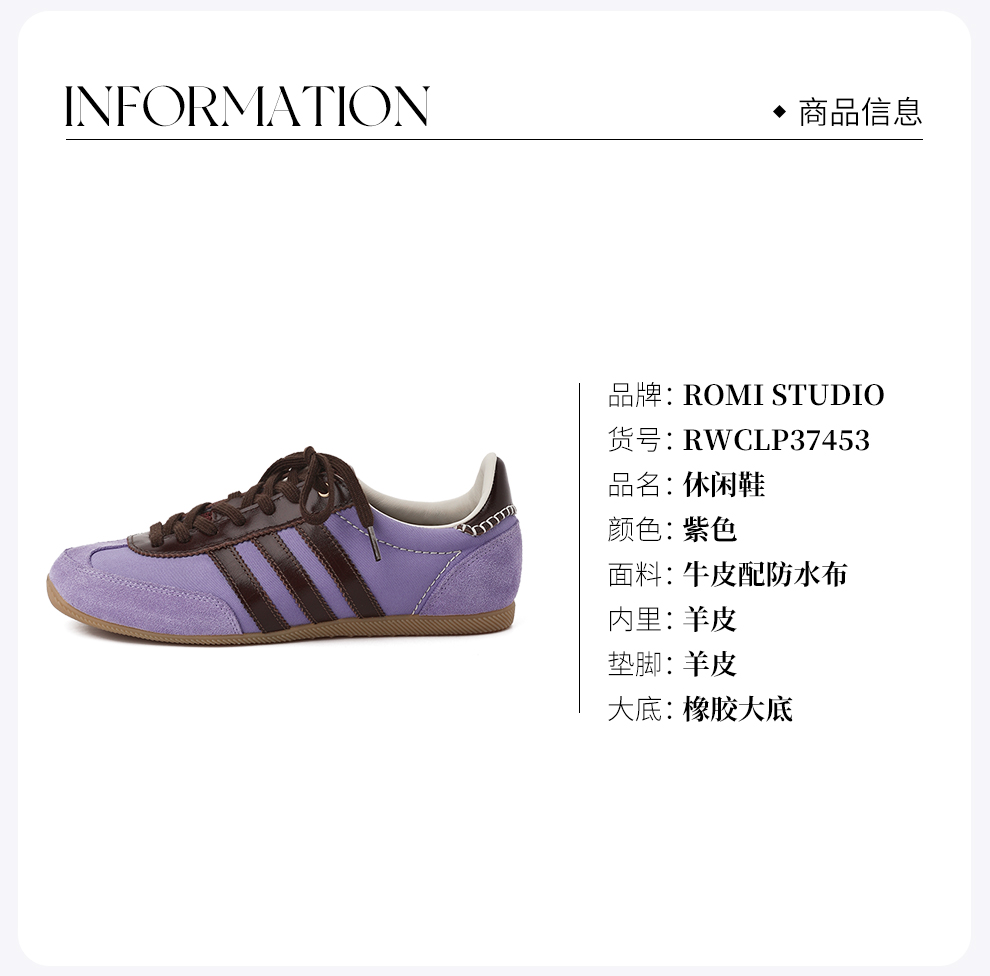 ROMI STUDIO“舒适百搭”牛反绒防水紫色薄底运动德训鞋RWCLP37453