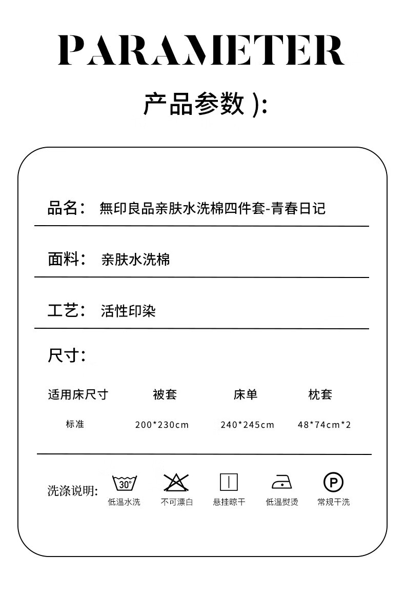 無印亲肤水洗棉四件套-青春日记 MUJI-TJ23-69