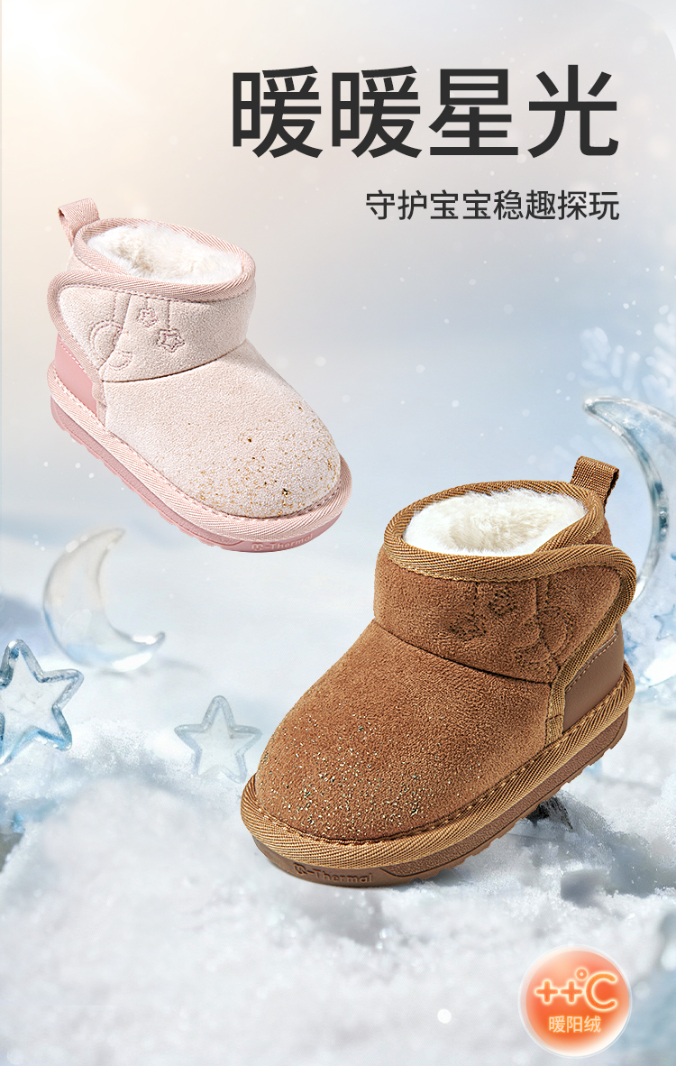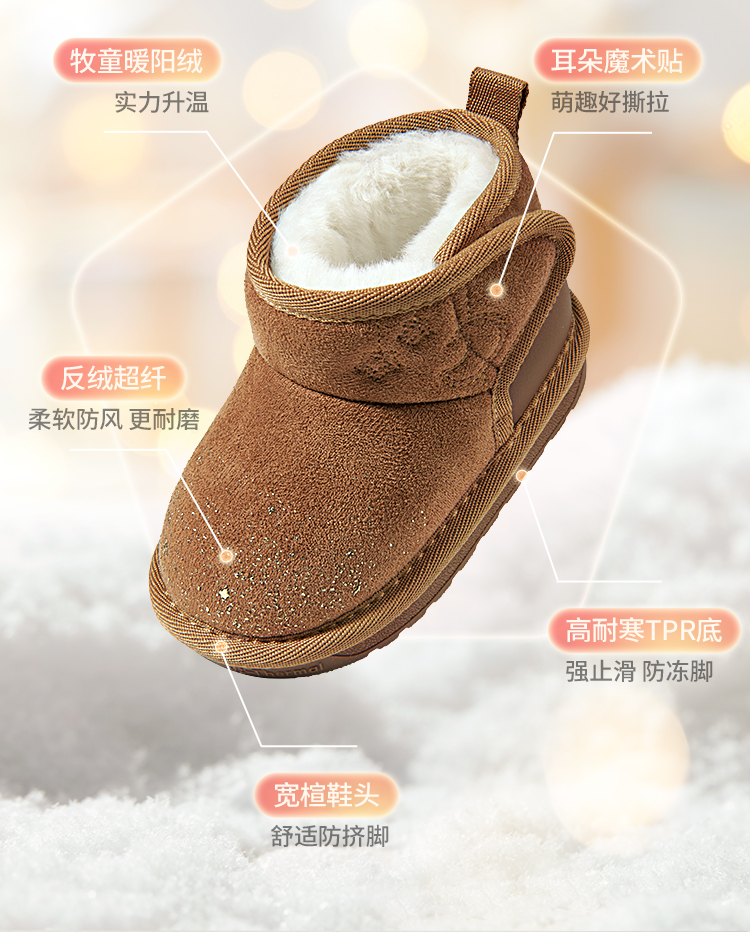 牧童2025冬季新款雪地靴保暖加绒防滑学步鞋卡通软底大棉机能鞋子