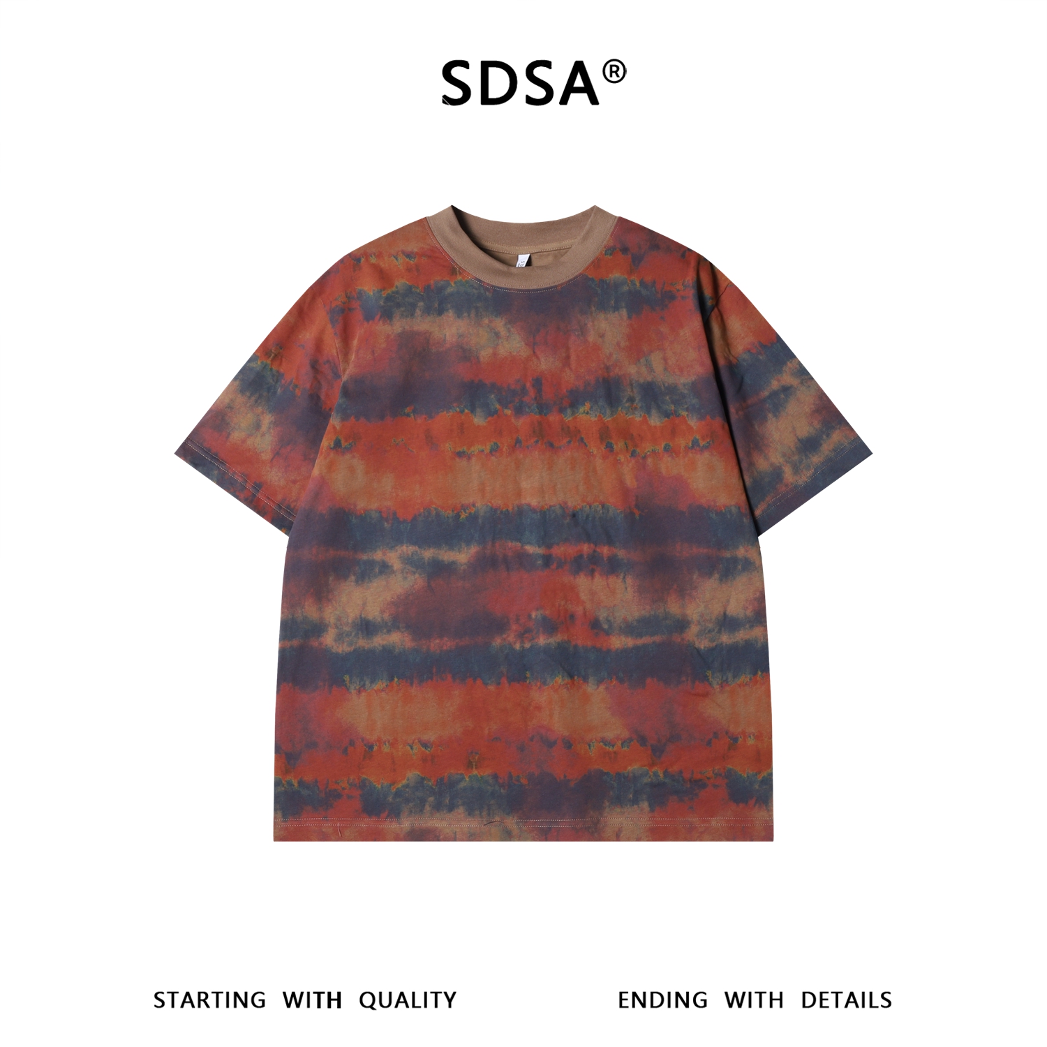SDSA男装2026新款高贵轻奢条纹扎染做旧晕染宽松短袖T恤百搭时尚