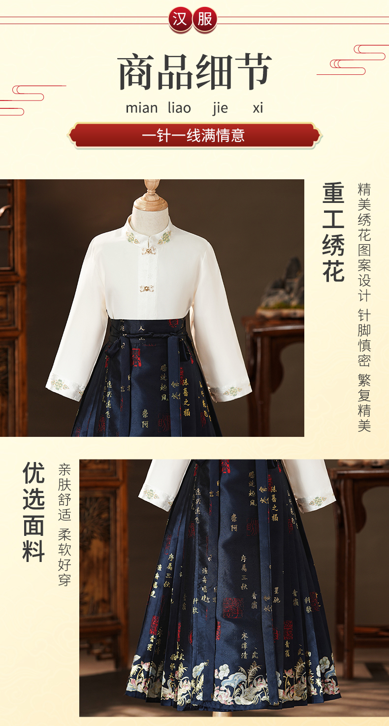 苏城纪童装汉服马面裙套装-渔舟唱晚 商品图3