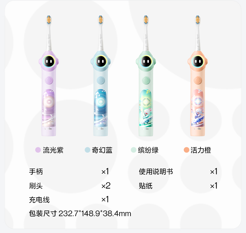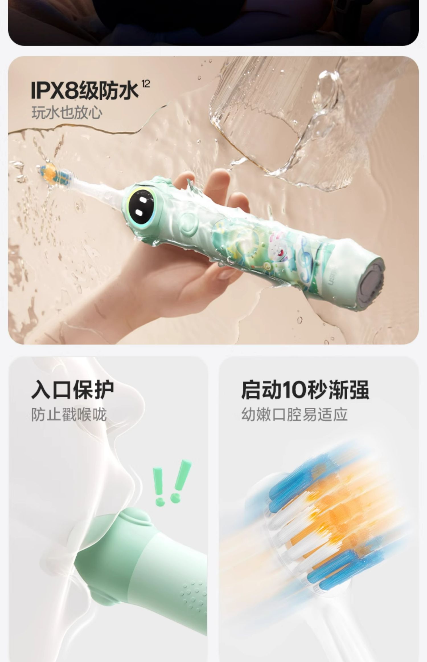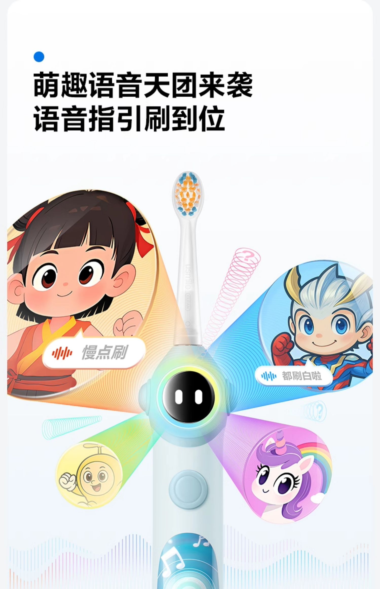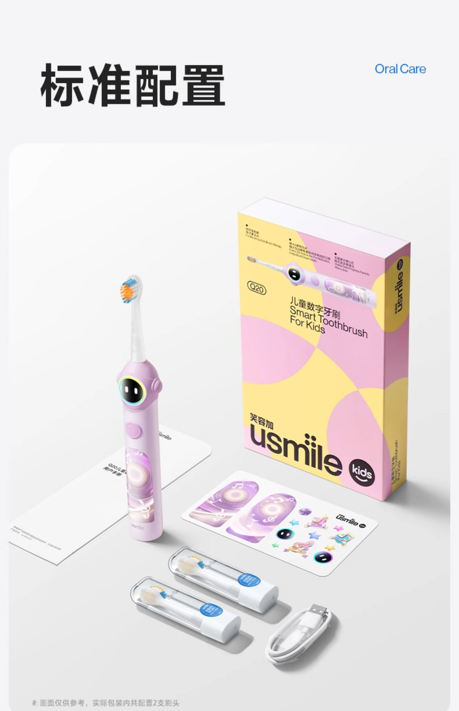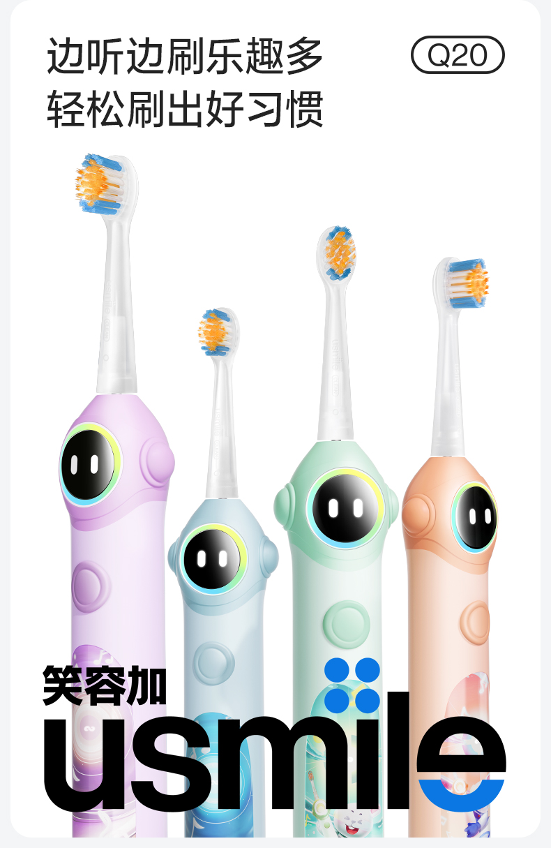 笑容加usmile儿童电动牙刷自动声波3-15岁宝宝智能防蛀软毛刷Q20 拆封不支持七天无理由退货哦!