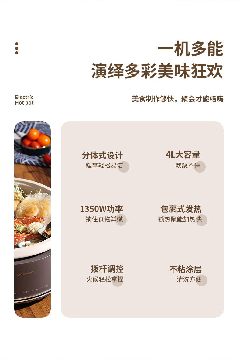 大宇(DAEWOO) 多功能煎煮焖电煎锅多用途锅分体式电火锅DYHG-4032