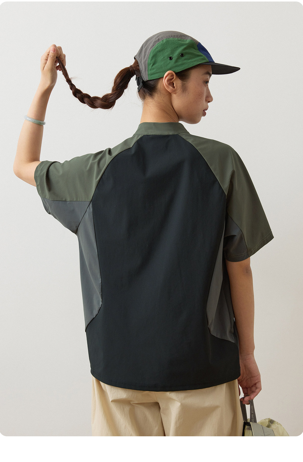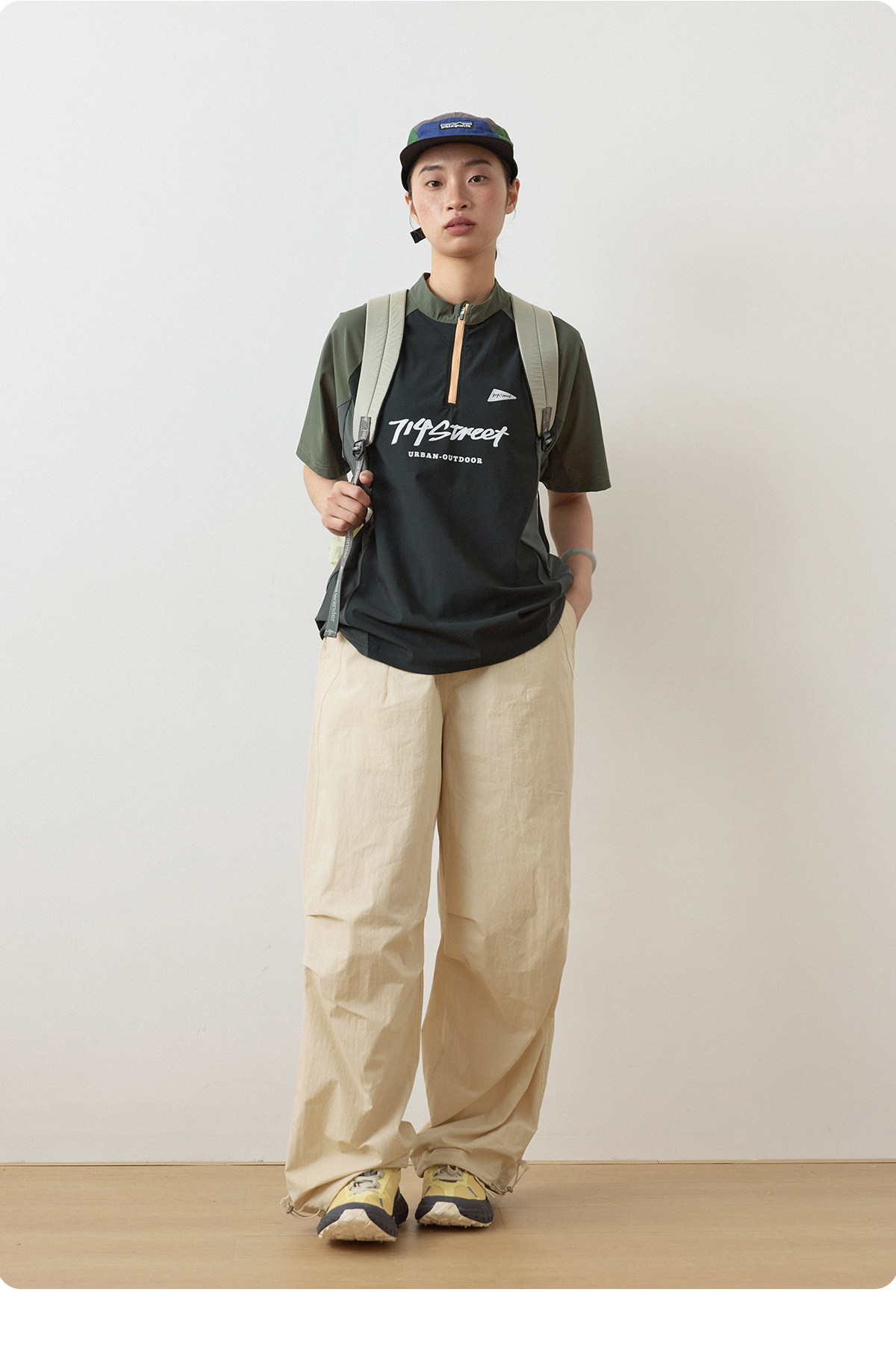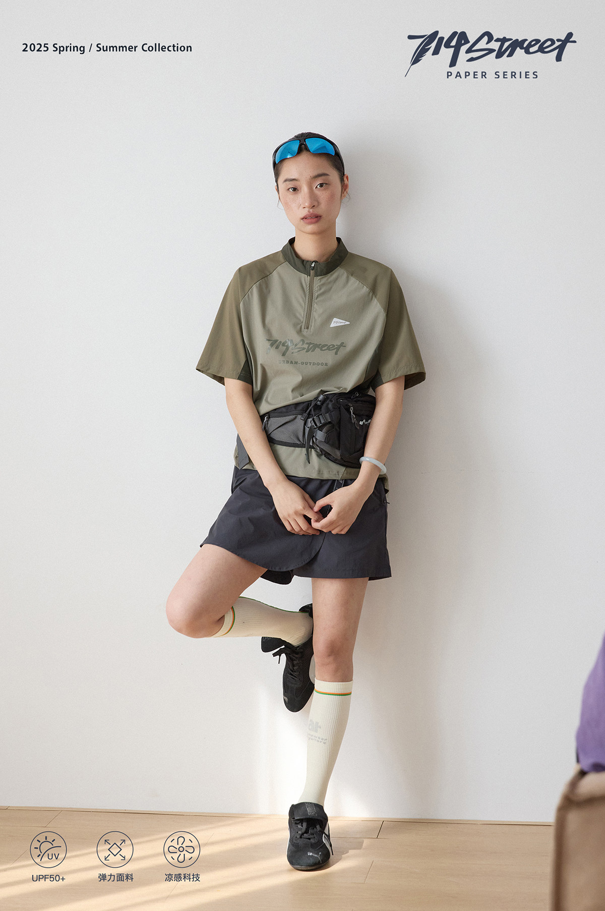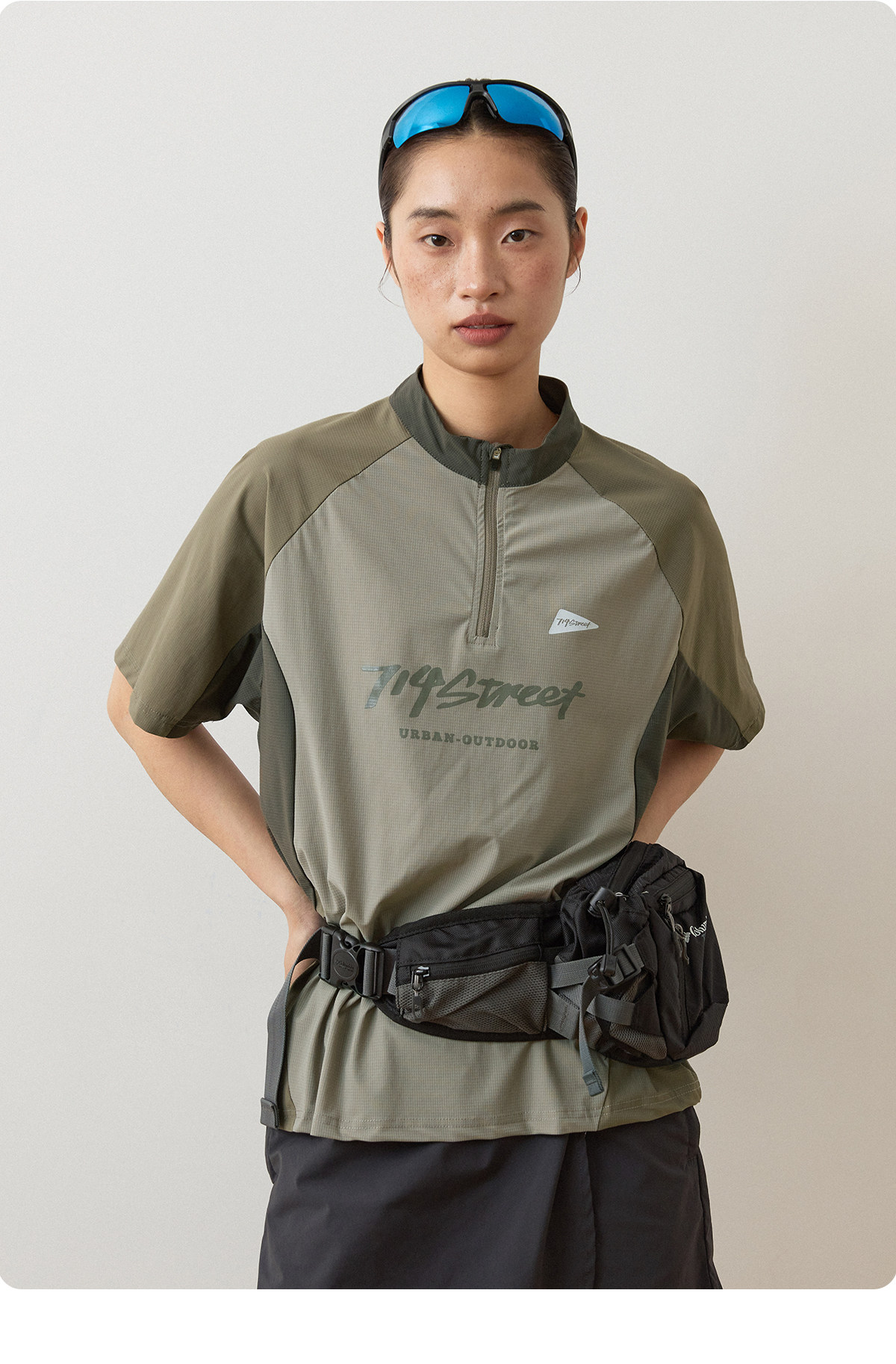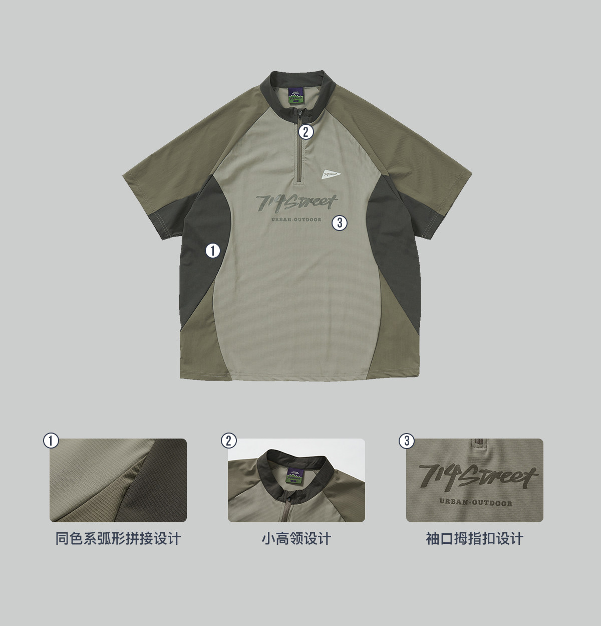 714street防晒速干复古半高领短袖T恤男夏季新款宽松凉感运动上衣