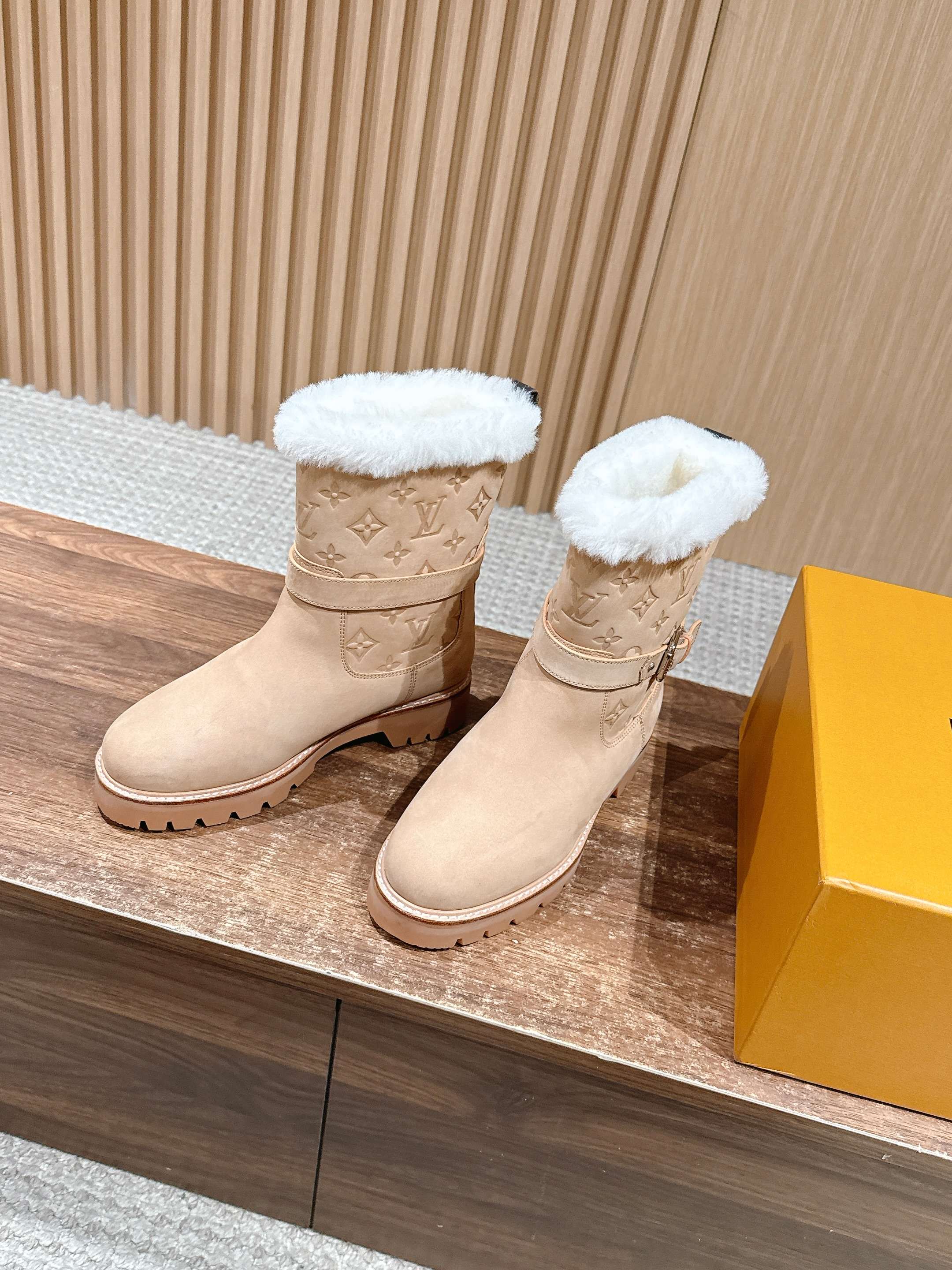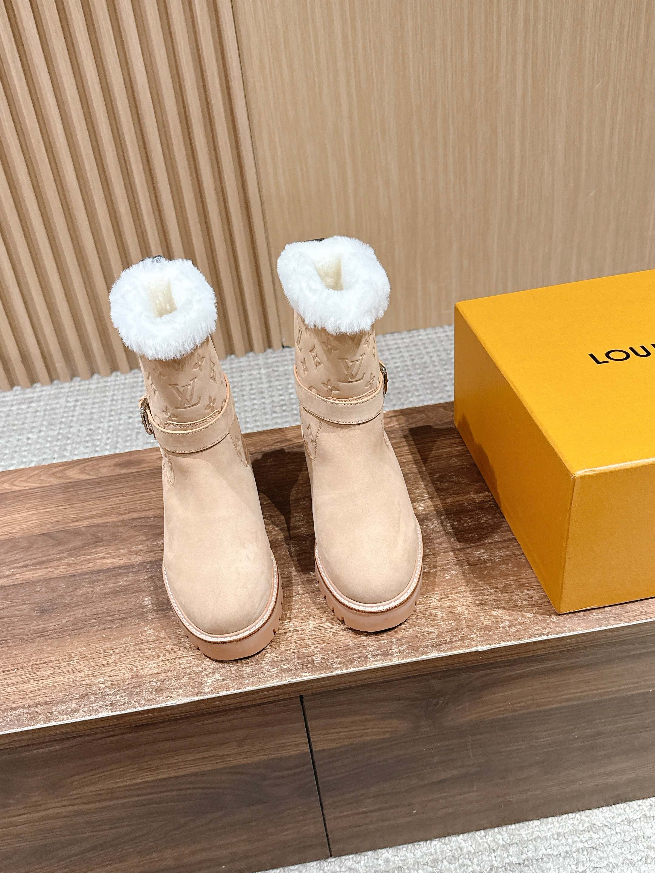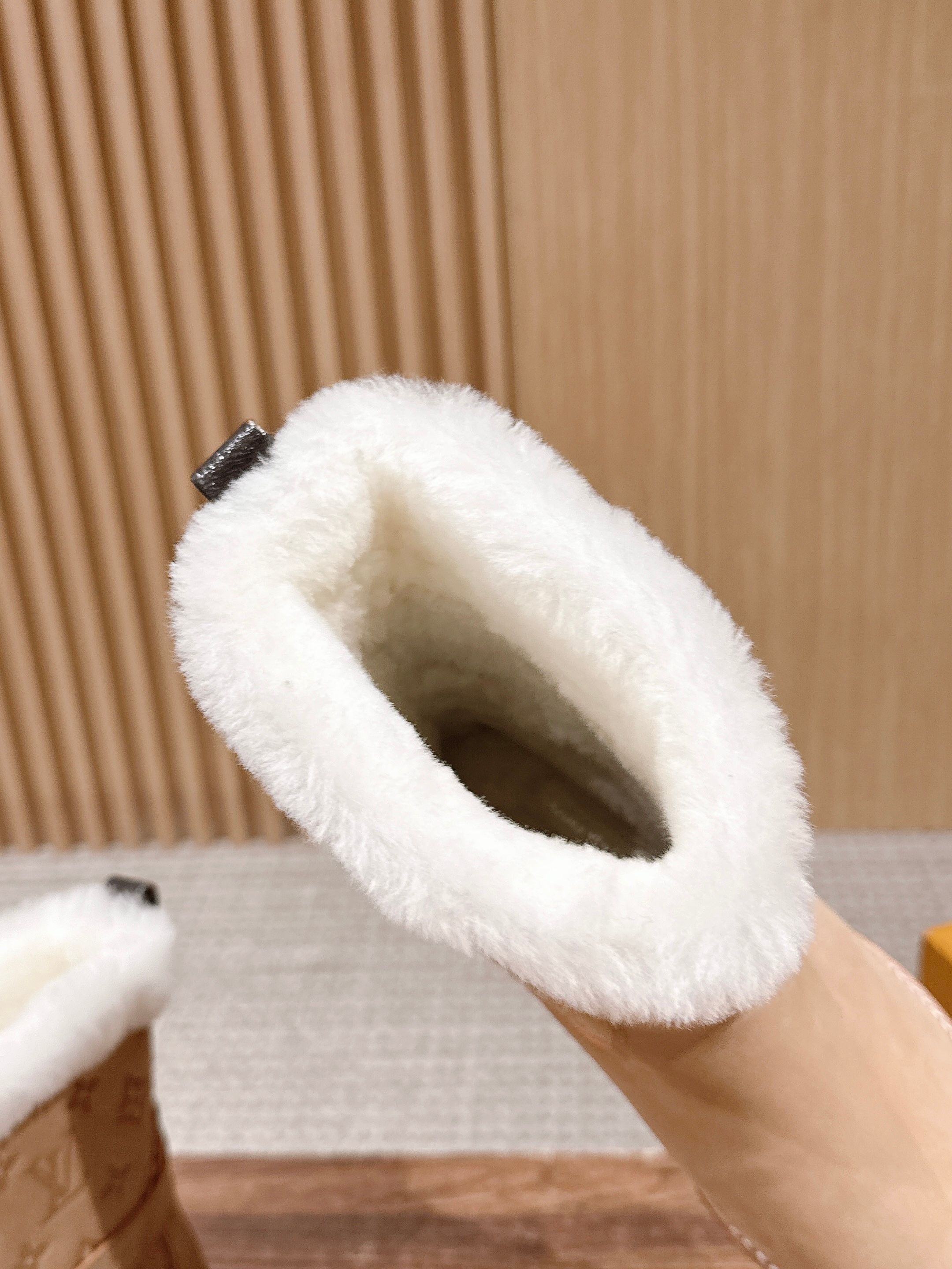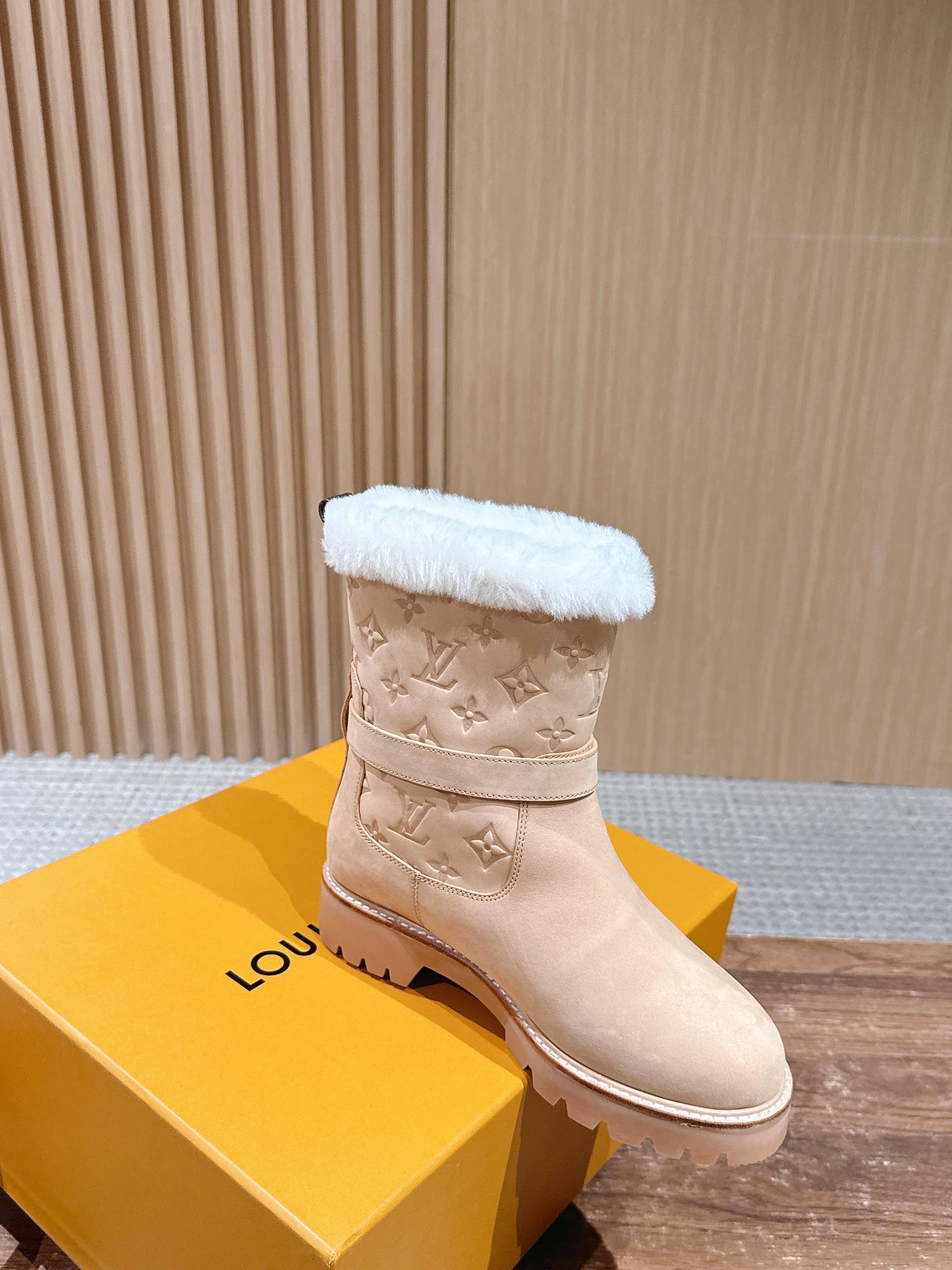 𝐋𝐨𝐮𝐢𝐬 𝐕𝐮𝐢𝐭𝐭𝐨𝐧 𝐓𝐞𝐧𝐢𝐭𝐨𝐫𝐲 #及裸靴 驴牌秋冬新款羊毛靴 本款及踝靴为正绒面牛皮革局部压印 Monogram 图案,搭配稳固橡胶外底。舒适羊毛皮内衬在靴筒顶部以包边形式呈现。莹泽搭扣与饰钉点亮腰带风格饰带。 Size:35-39(40/41定制不退换)