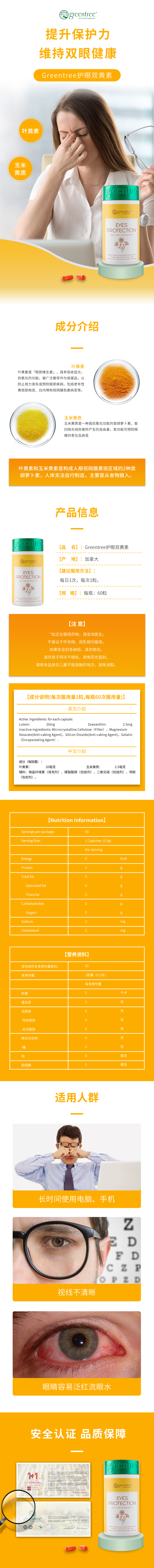【保税仓】正品眼睛明亮 舒缓疲劳 加拿大greentree护眼双黄素(60粒)
