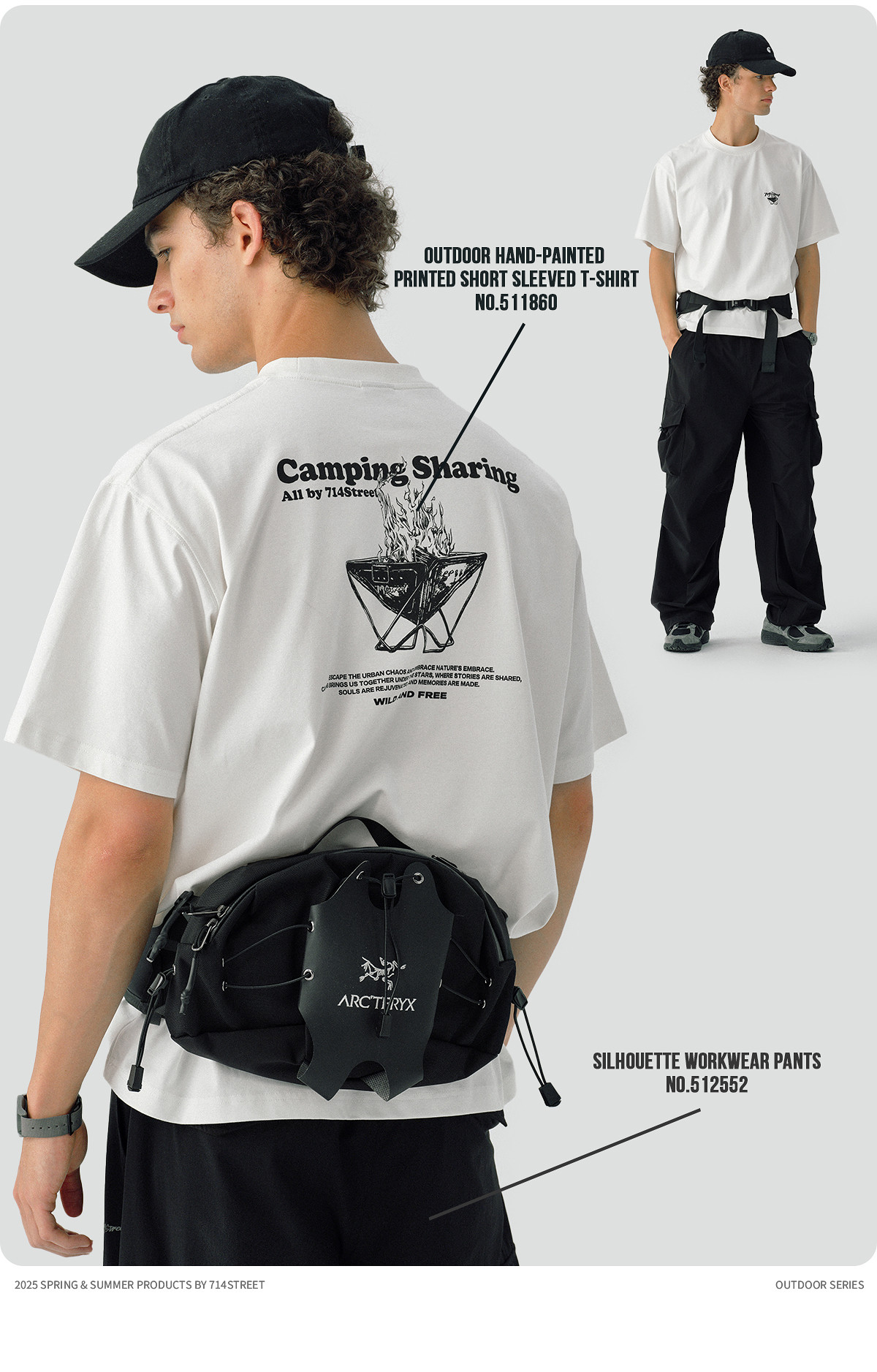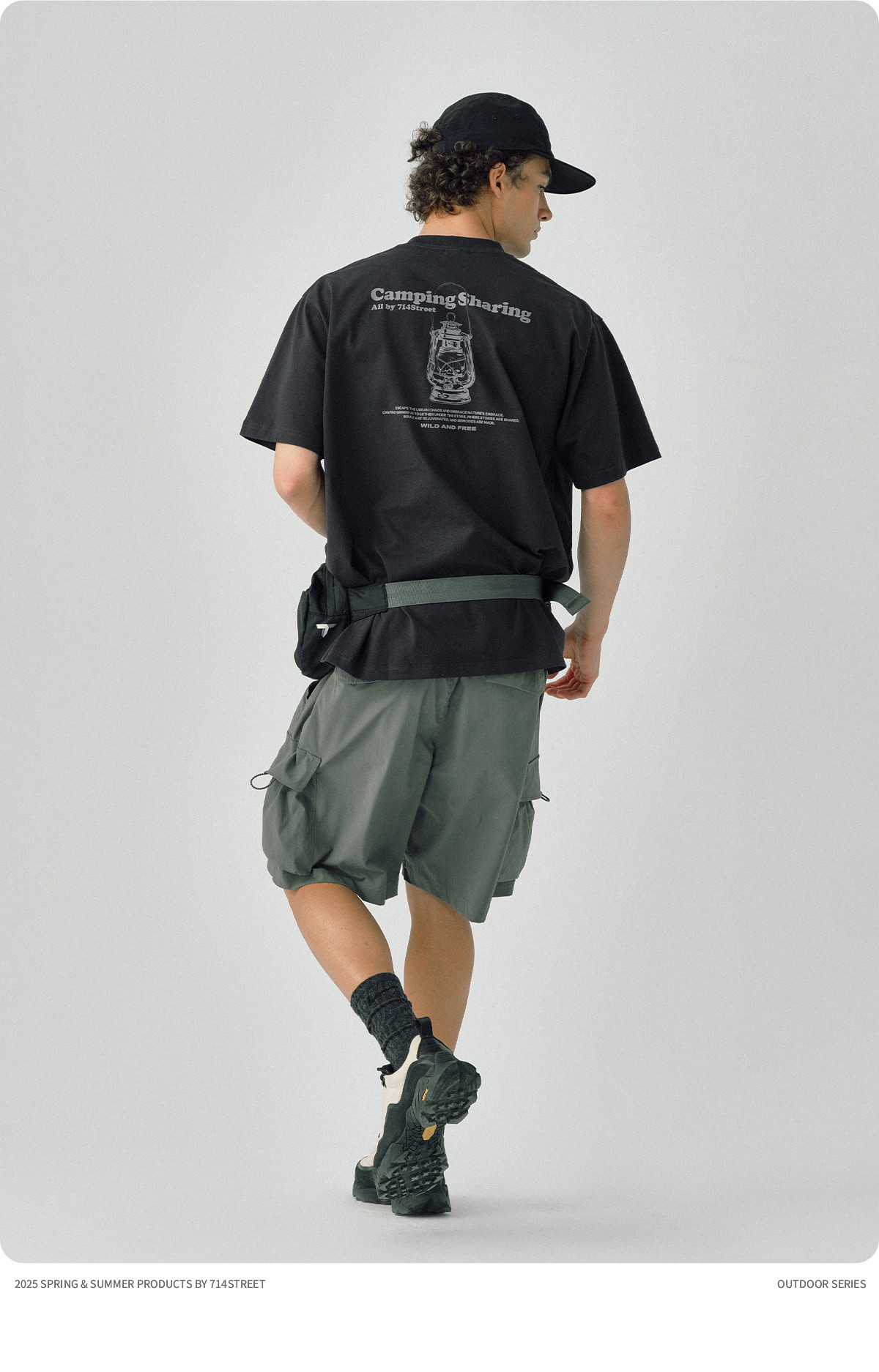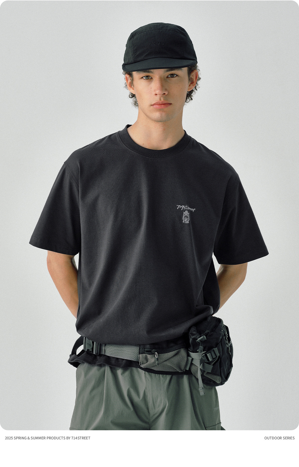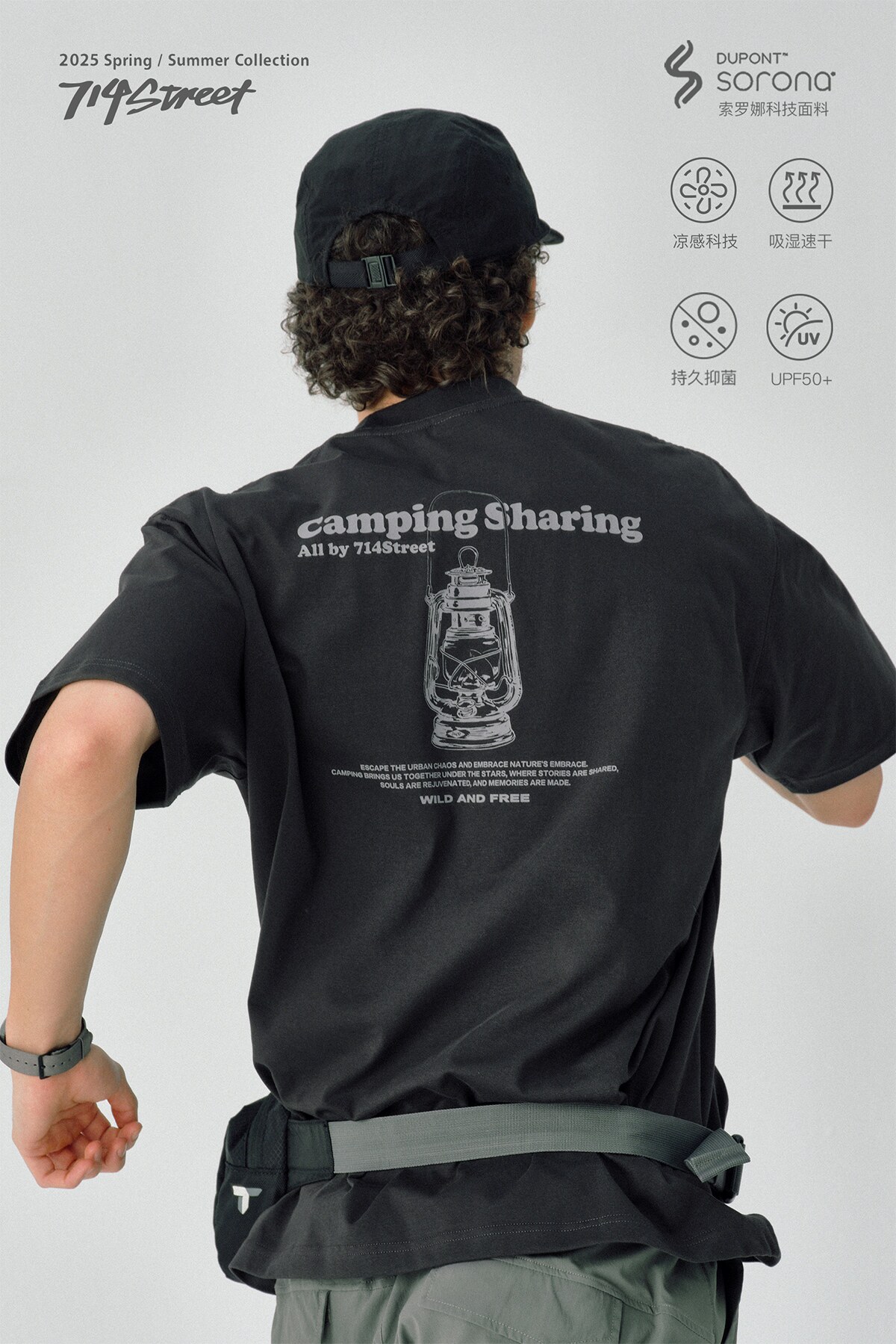 714street凉感防晒户外灯印花短袖T恤男2025夏季新款国潮宽松上衣