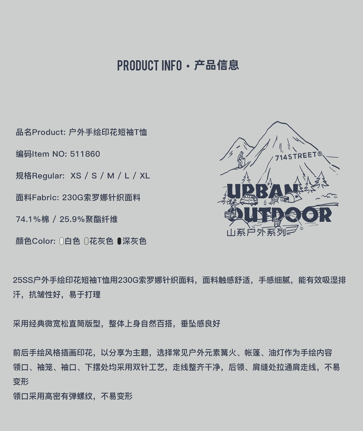 714street7A抗菌吸湿速干短袖2026夏季美式复古纯棉印花情侣T恤男