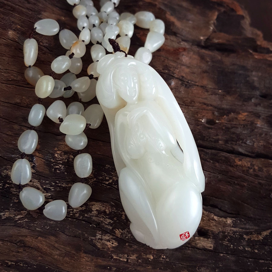 名称 | 天然新疆籽料细腻油润度佳玉贵人(贵人相助、事业顺遂)和田玉吊坠手把件 |