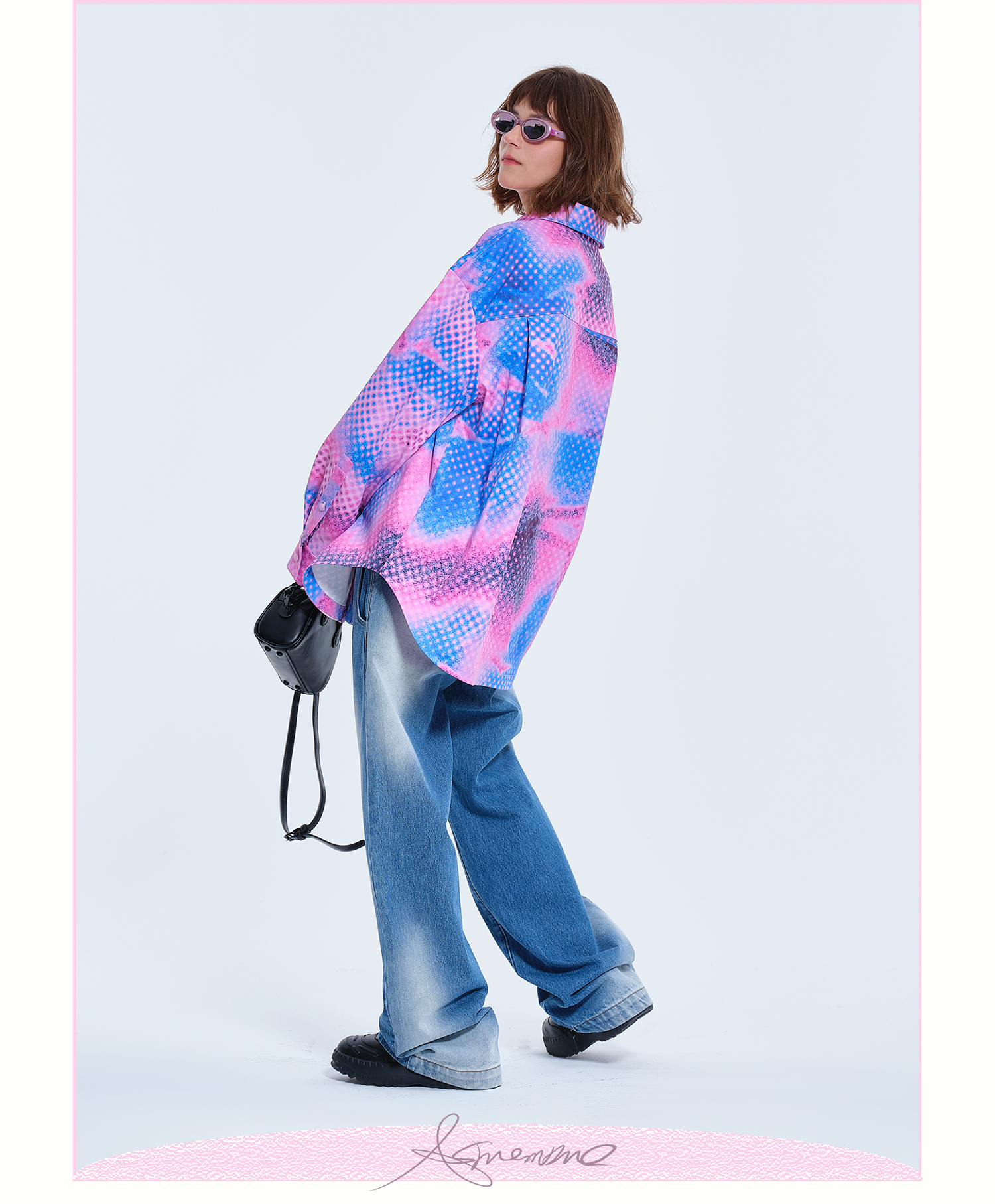 ASMEMMO咦哇•“电子花蝴蝶”满身印花长袖衬衫