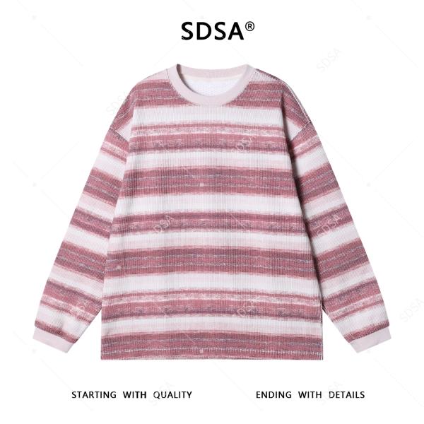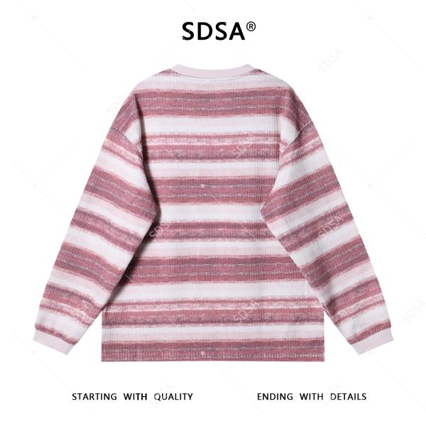 67993SDSA男士秋冬新款痞帅男装极简风撞色条纹圆领针织卫衣慵懒风百搭