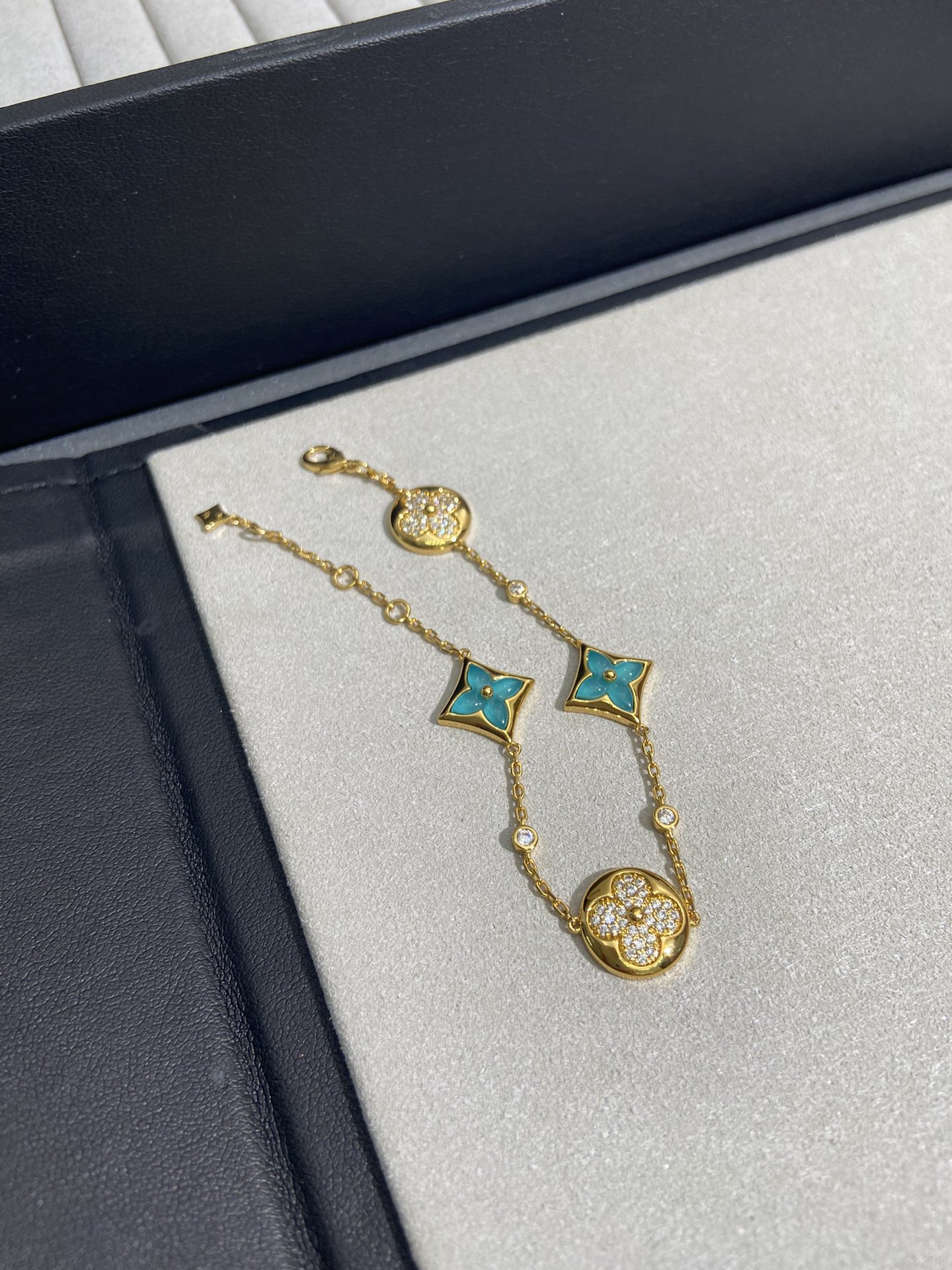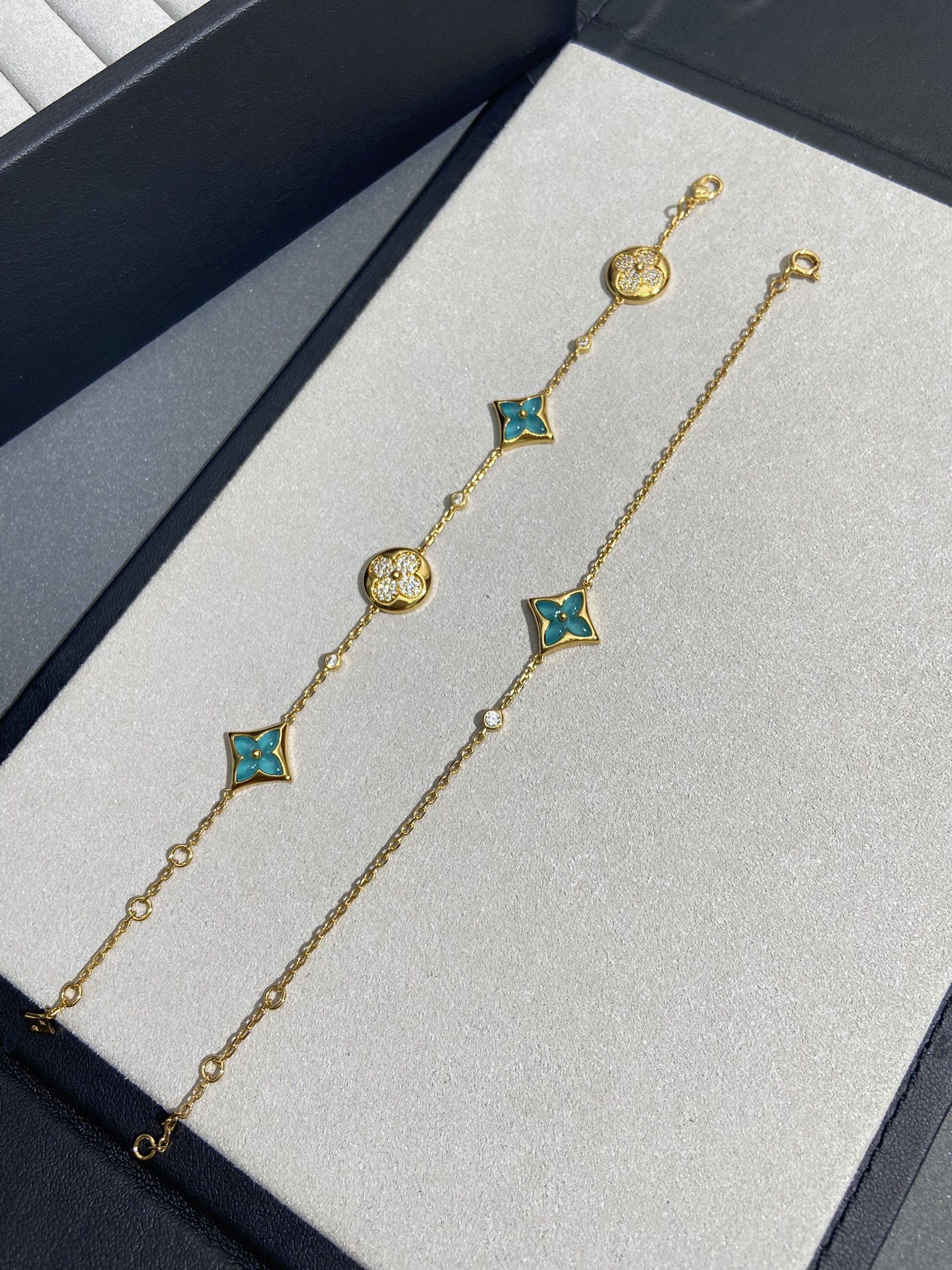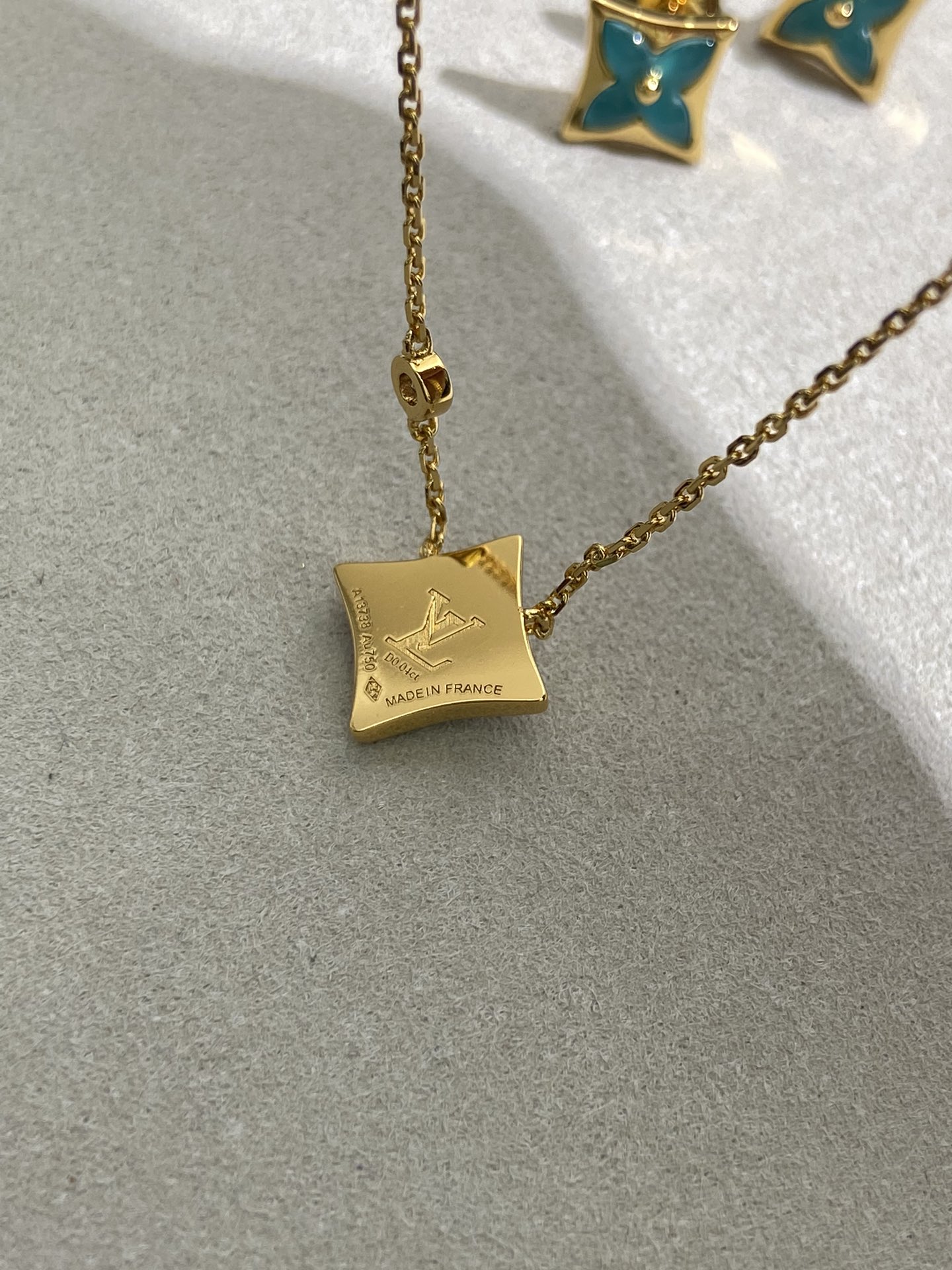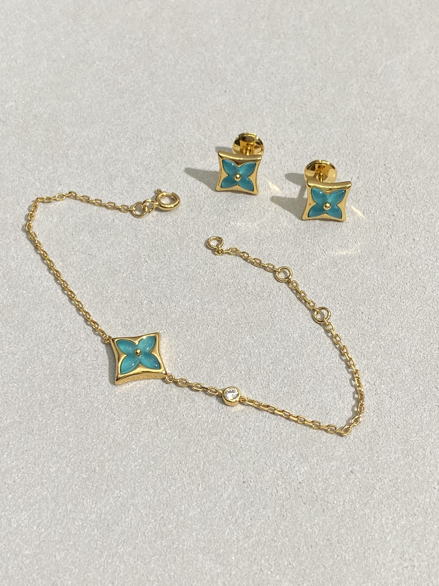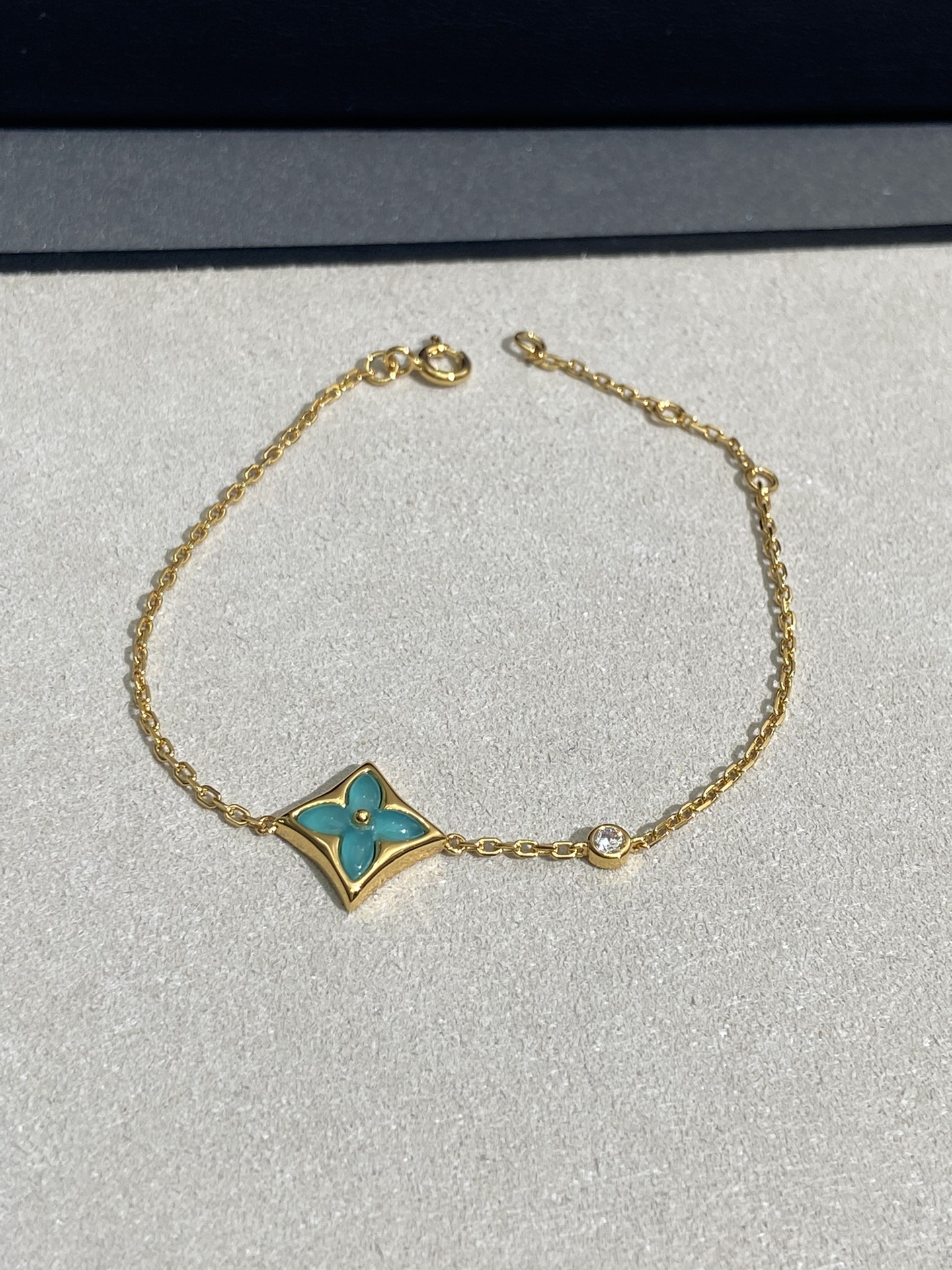 实拍 新品天河石 Blossom项链 L家的珠宝,很多宝贝们还不太了解 但是其实我们 的Blossom 系列工艺和审美试戴了就无法抗拒~今天给大家带来的是我们的新品项链天河石|亚马逊石 天河石又称“亚马逊石”,蕞早发现地在亚马逊河流域,因为它的蓝绿色,使人连想到亚马逊河。天河石功效与作用 1.彰显气质;天河石是一种温润的玉石,与东方女性的传统美十分吻合,女性佩戴天河石饰品之后,可以彰显出自身所具有的温婉、贤淑的气质。 2.信心的灌注,结合了静谧的蓝与自在的绿,天河石的蓝绿色给人一种沉稳的力量,大大的增强女性自信魅力。 春来河水绿如蓝,天河石那抹Tiffany蓝,轻浅明艳,佩戴衬得肤色粉嫩、白皙,搭配素色服装能起到色彩点缀作用,职场女性着装套装也能增加时尚感。这种蓝绿色让人具有清冷气质同时带来恬静的氛围~V金镀金材质