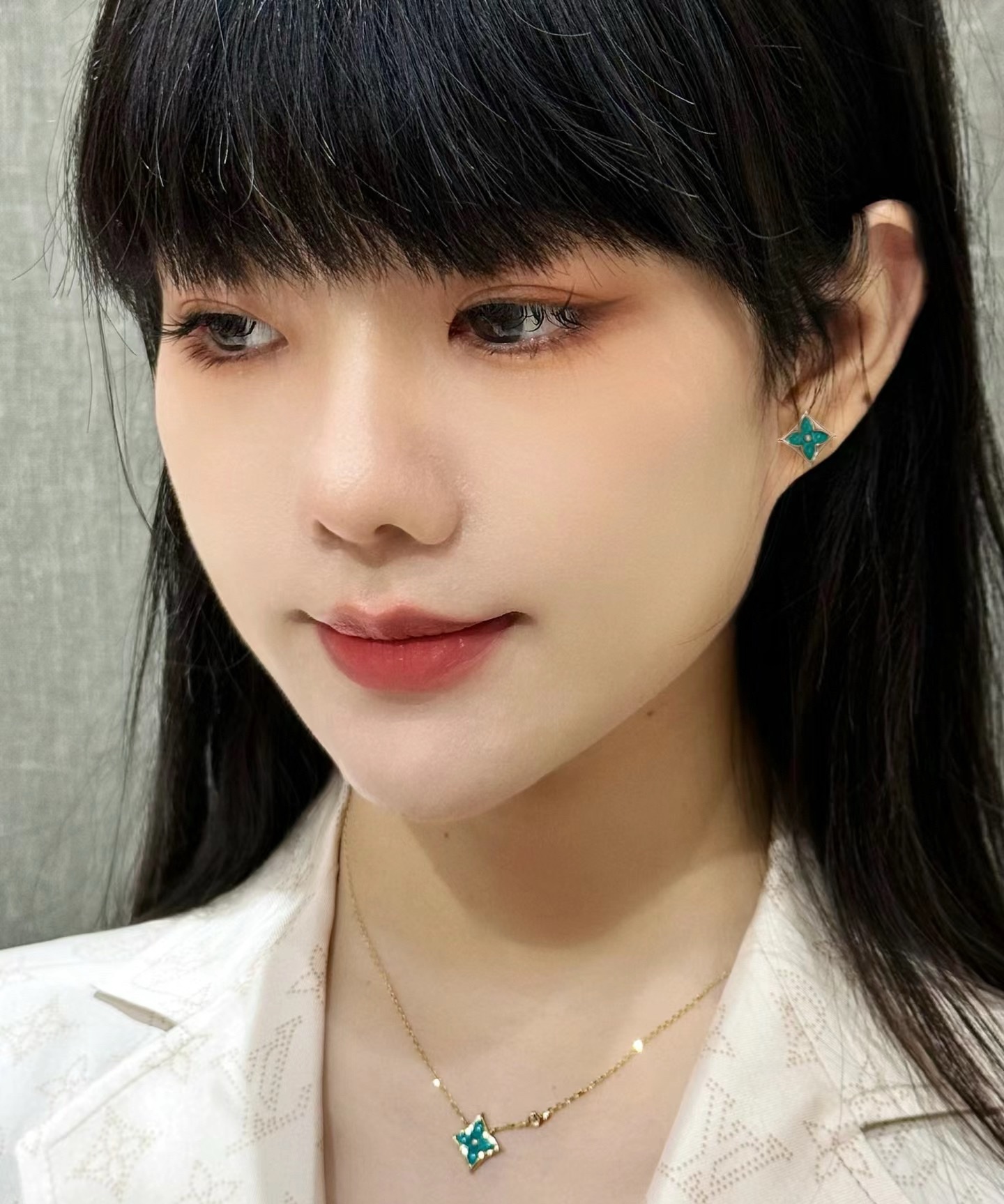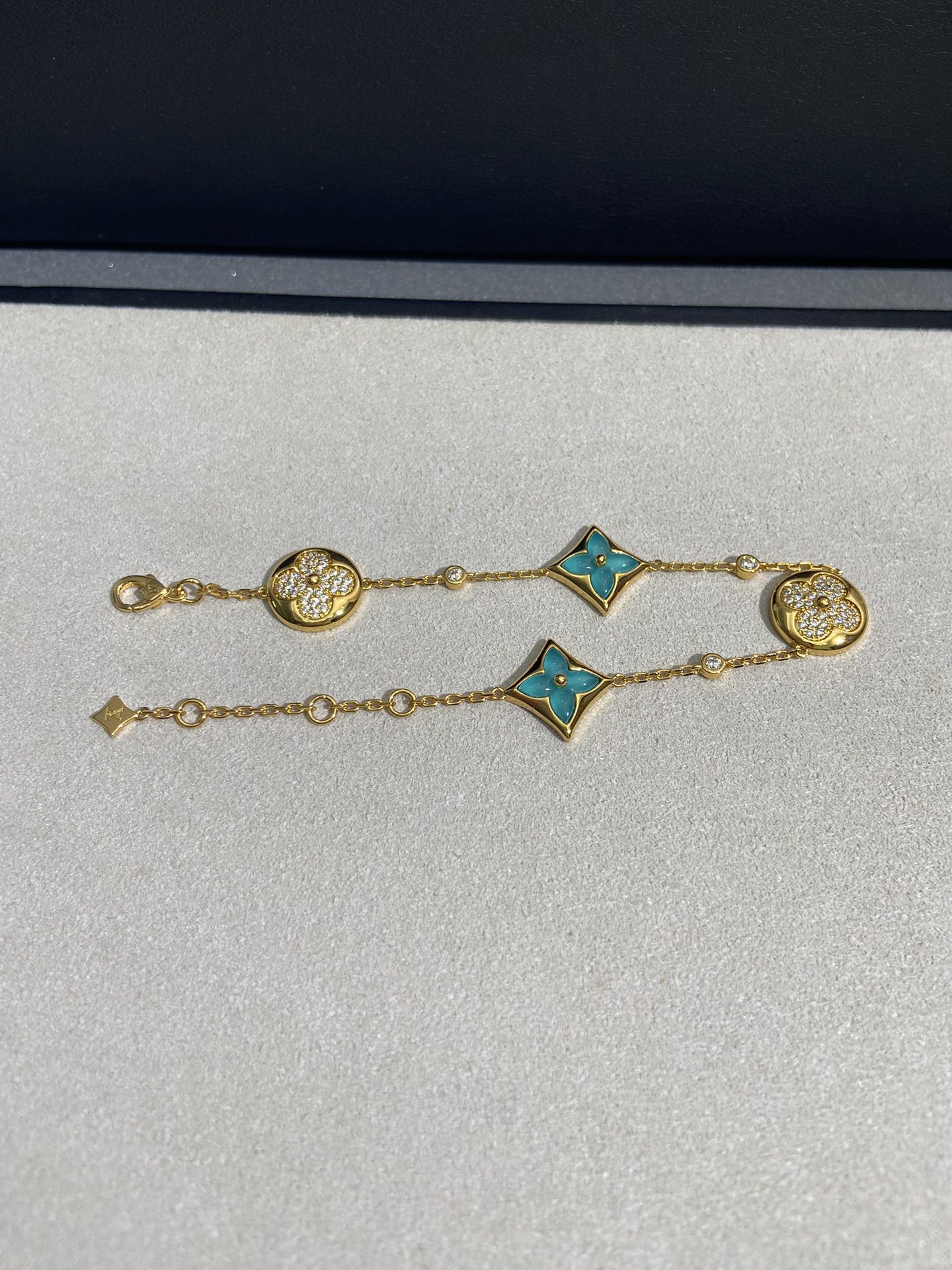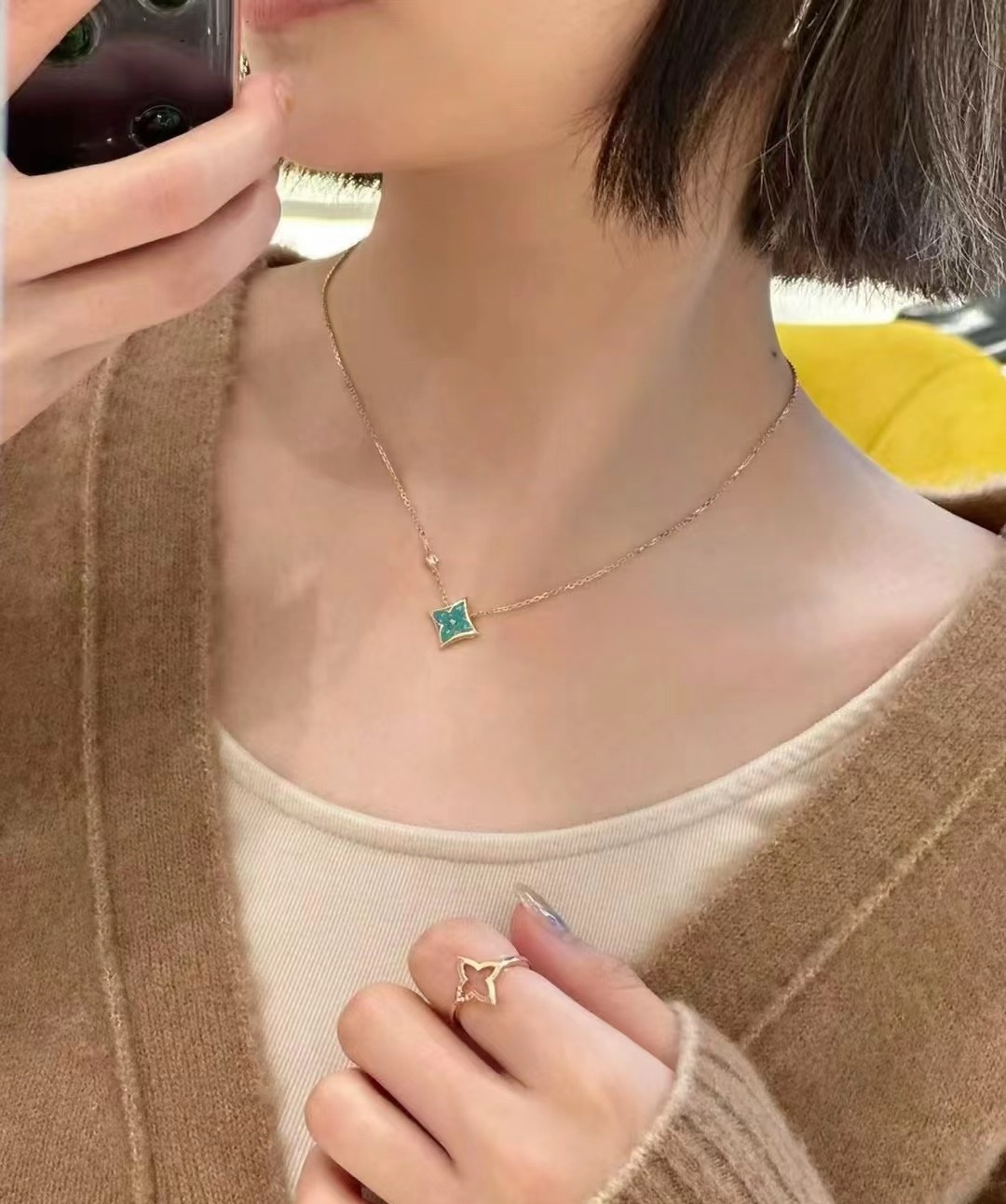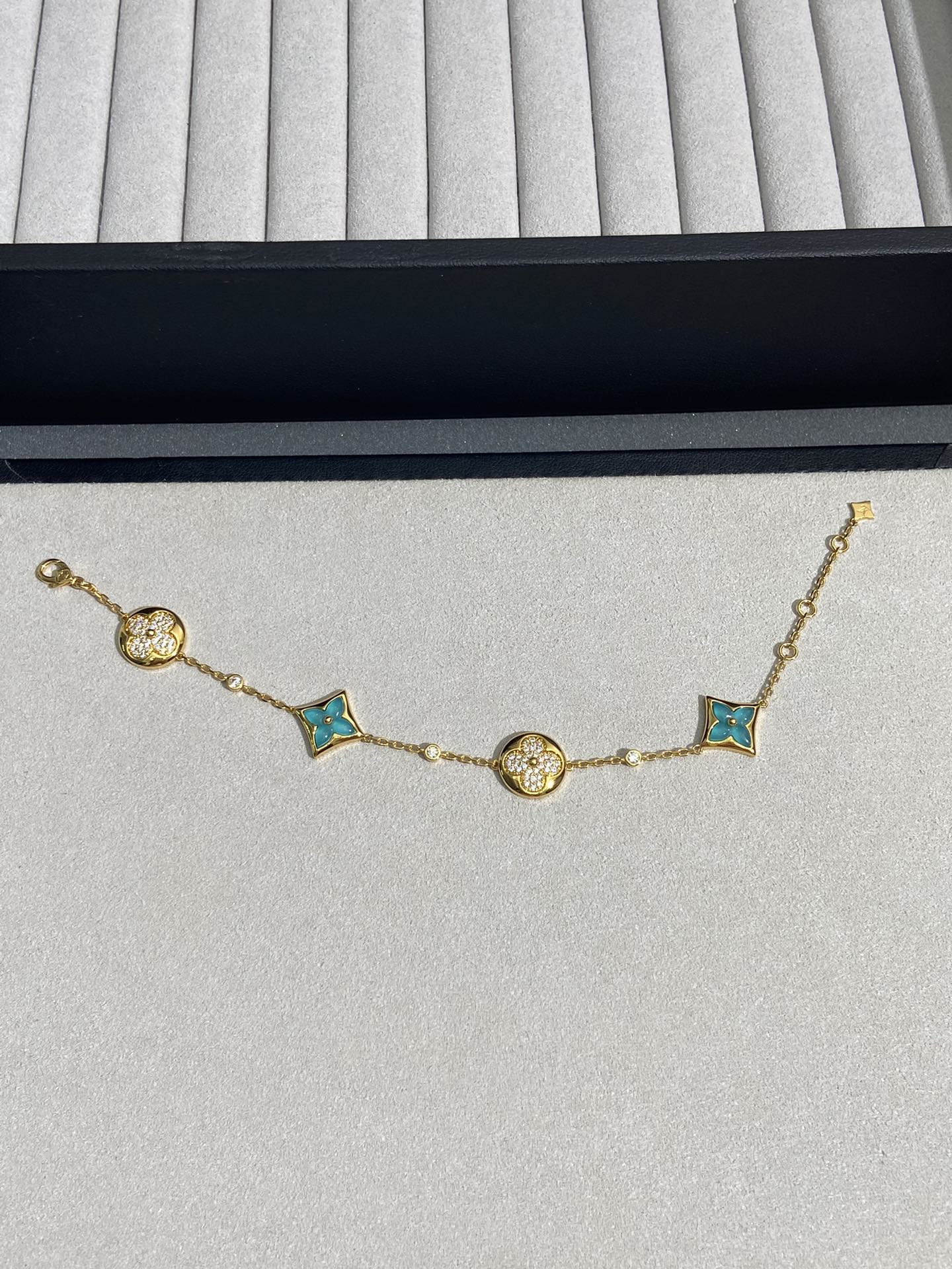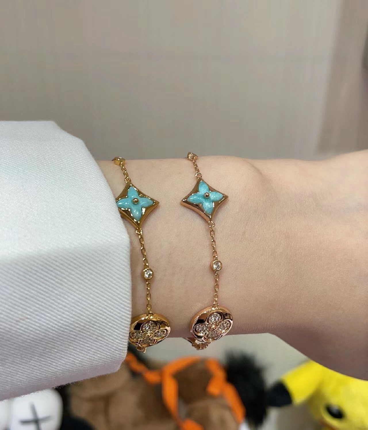 实拍 新品天河石 Blossom项链 L家的珠宝,很多宝贝们还不太了解 但是其实我们 的Blossom 系列工艺和审美试戴了就无法抗拒~今天给大家带来的是我们的新品项链天河石|亚马逊石 天河石又称“亚马逊石”,蕞早发现地在亚马逊河流域,因为它的蓝绿色,使人连想到亚马逊河。天河石功效与作用 1.彰显气质;天河石是一种温润的玉石,与东方女性的传统美十分吻合,女性佩戴天河石饰品之后,可以彰显出自身所具有的温婉、贤淑的气质。 2.信心的灌注,结合了静谧的蓝与自在的绿,天河石的蓝绿色给人一种沉稳的力量,大大的增强女性自信魅力。 春来河水绿如蓝,天河石那抹Tiffany蓝,轻浅明艳,佩戴衬得肤色粉嫩、白皙,搭配素色服装能起到色彩点缀作用,职场女性着装套装也能增加时尚感。这种蓝绿色让人具有清冷气质同时带来恬静的氛围~V金镀金材质