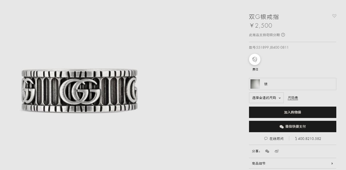 古驰gucci 925纯银双g经典戒指